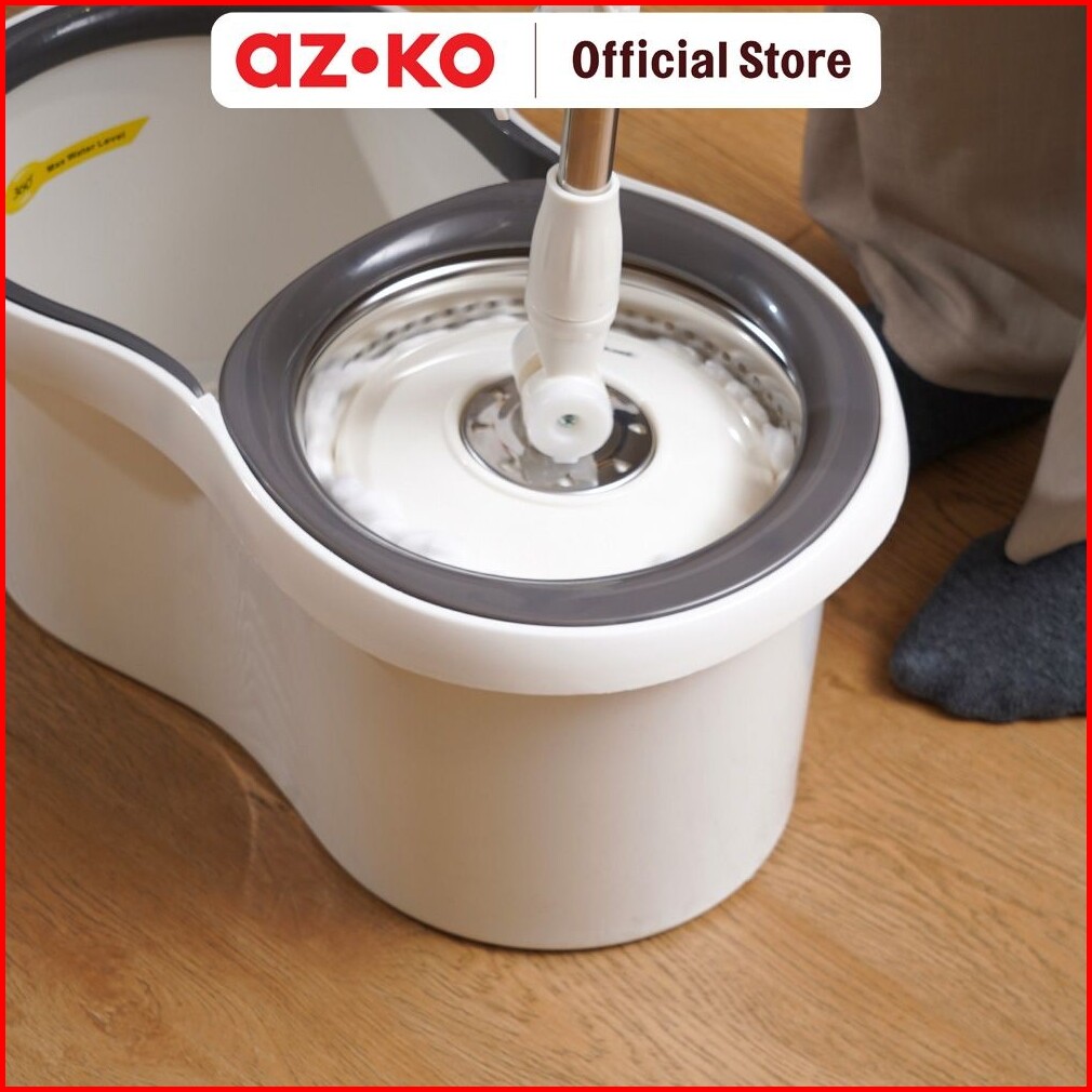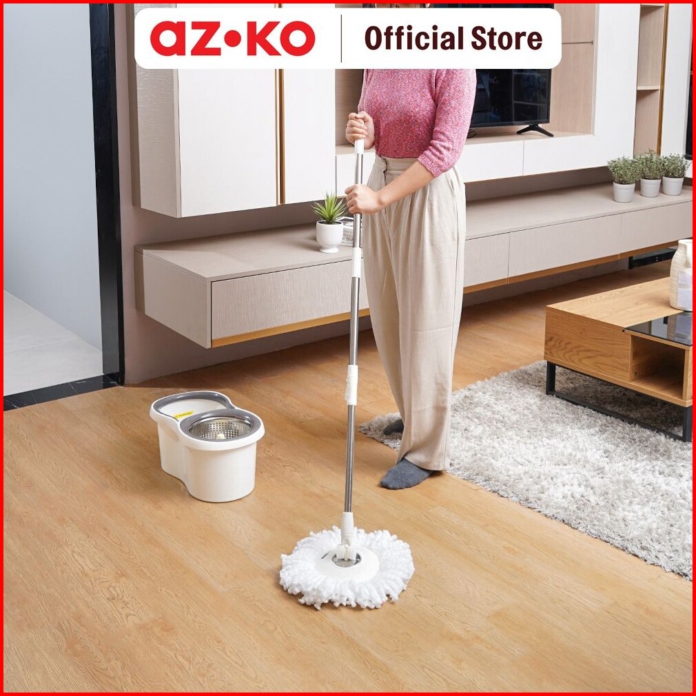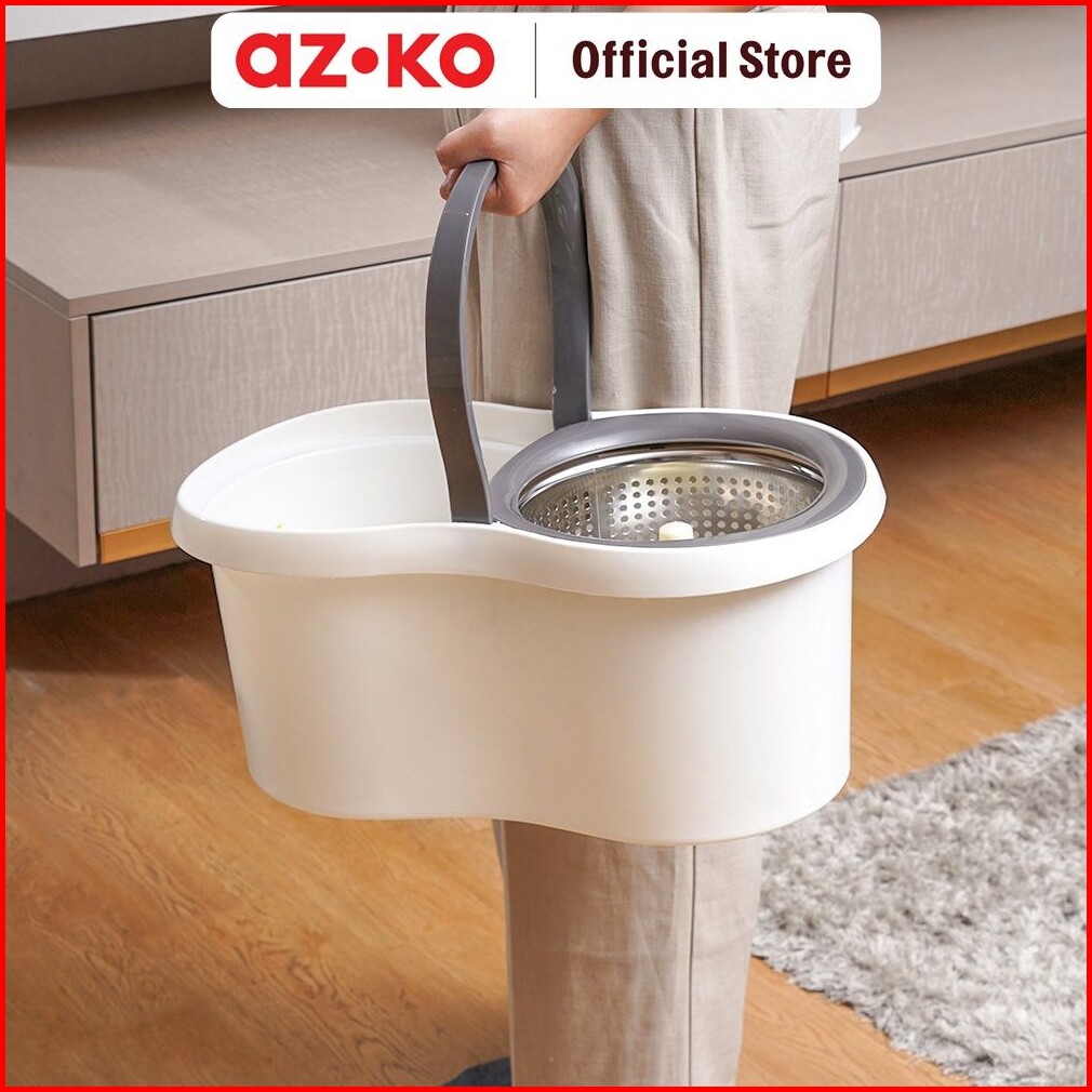 Azko Proclean Set Alat Pel Putar Dengan Ember Peras - Putih Kain Pel Spinning Mop With Bucket Pembersih Lantai Alat Kebe