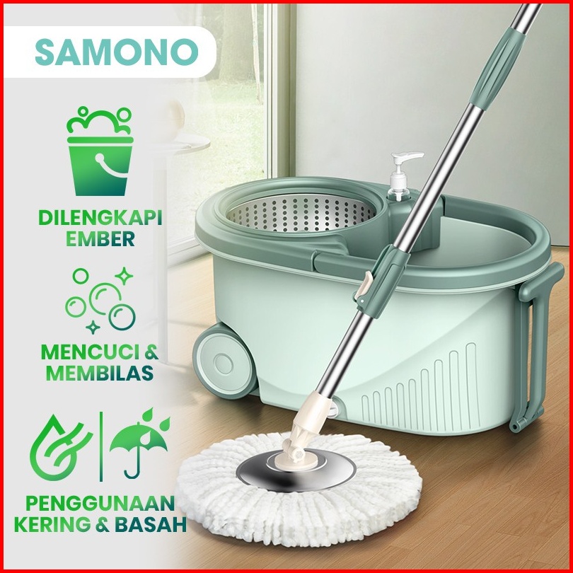 Bonbox Bct704 Khaky Alat Pel All In One Fiber Spin Mop Dengan Ember Hijau Coklat