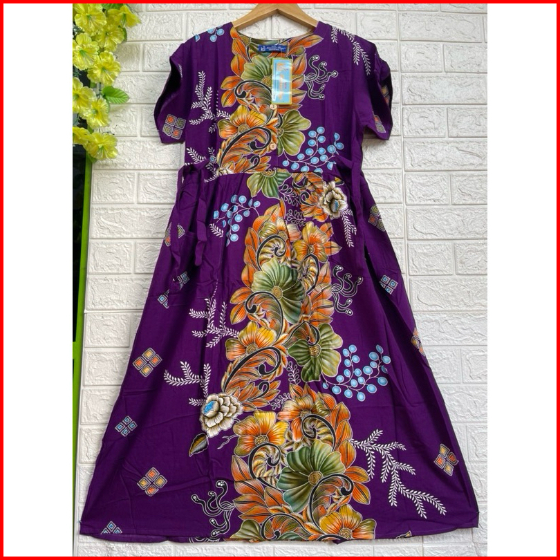 Daster Batik Kencana Ungu Original Label Biru Kode Ds 47 Kub Motif Bunga Terbaru Model 4tali Pinggang Busui Friendly Bah