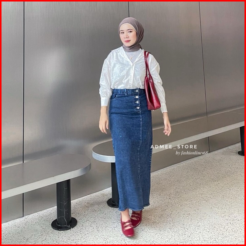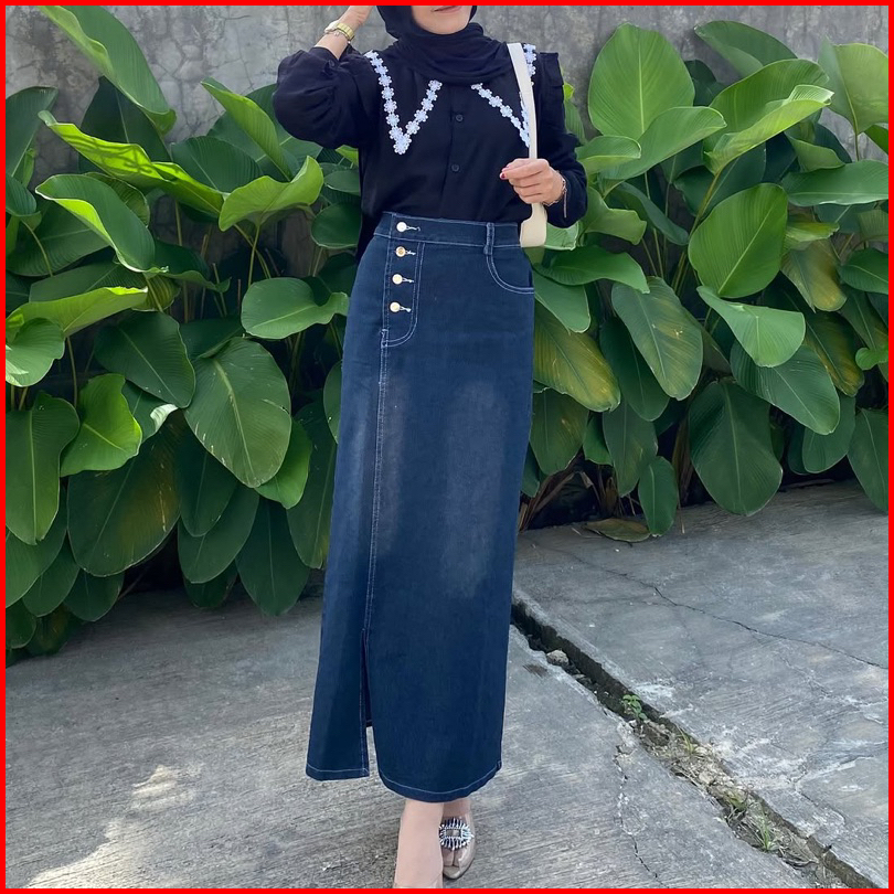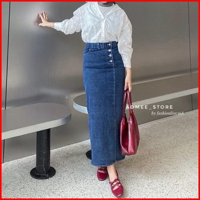 Fashionline Rok Jeans Skirt Belah Samping Rok Kancing Samping Kamila