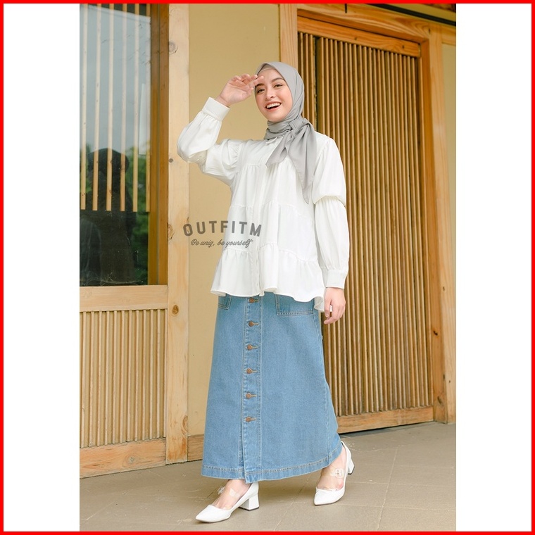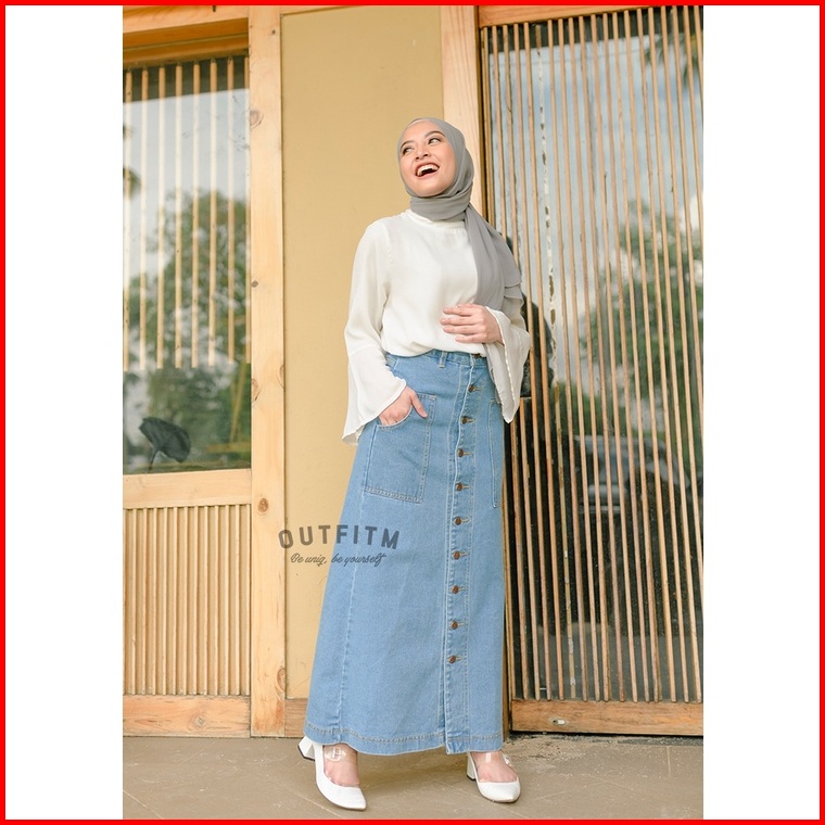 Outfitm Damia Button Skirt Rok Jeans Muslim Panjang
