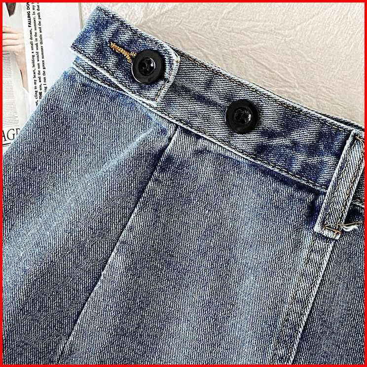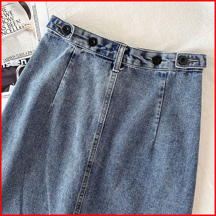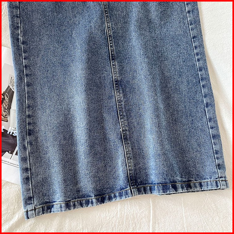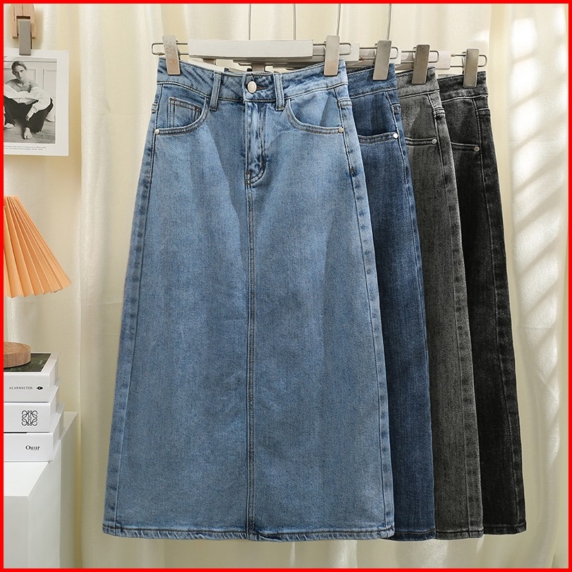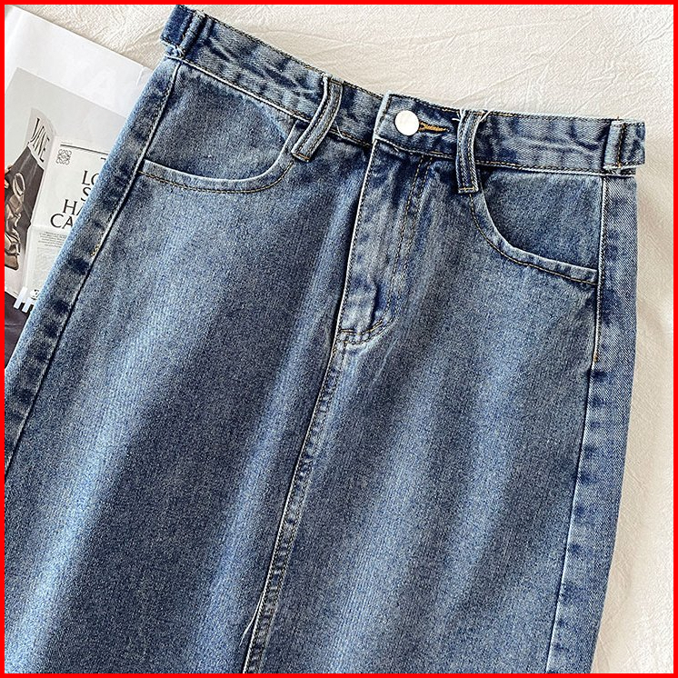 Denim Rok Wanita Pinggang Tinggi Serbaguna Is Thin -line Loose Mid Slong Skirt
