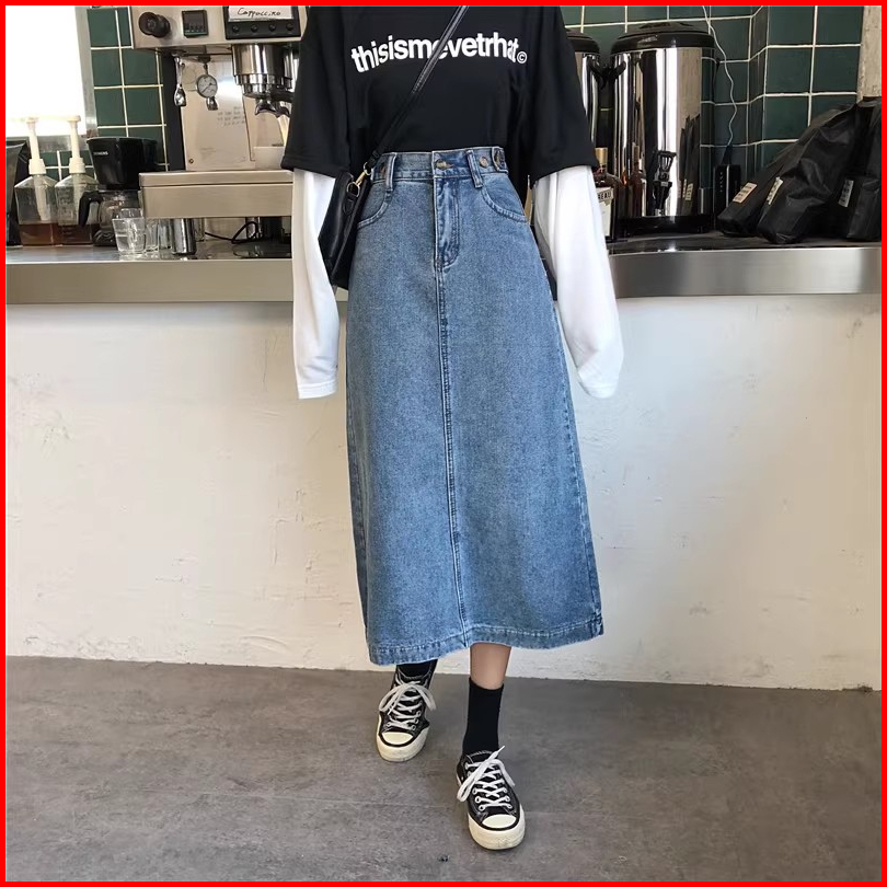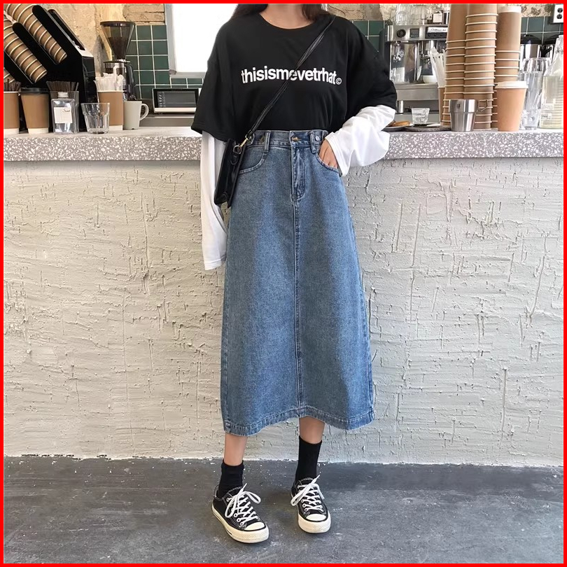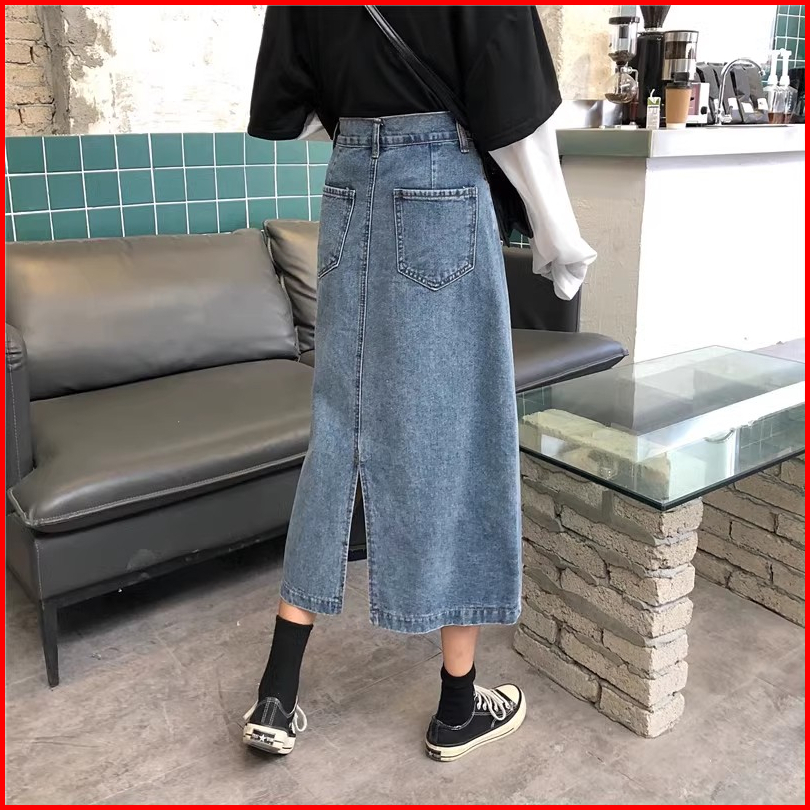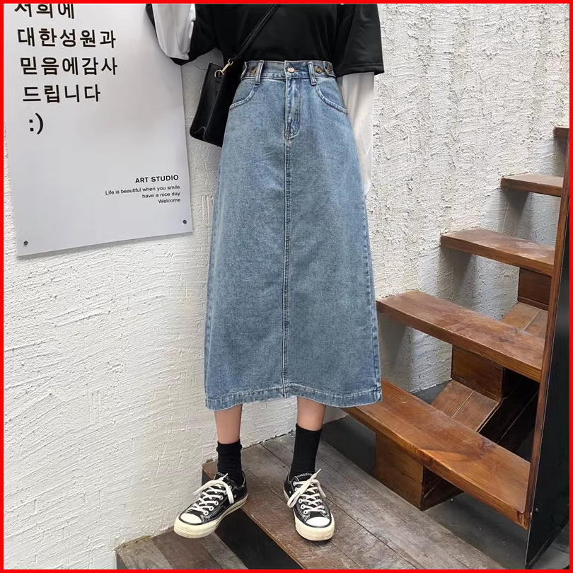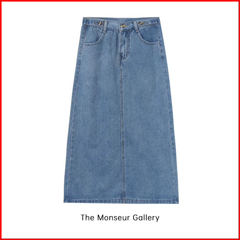The Monseur Gallery Rok Denim Skirt Midi A-line Panjang Split Wanita Hw08