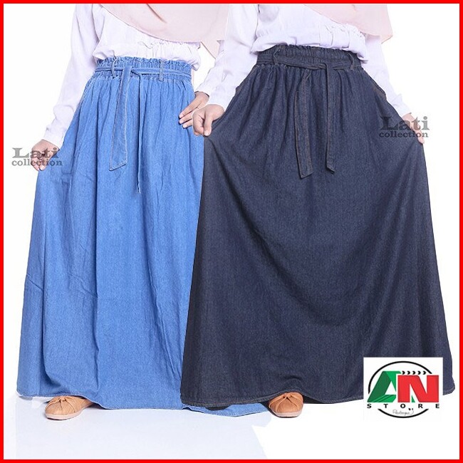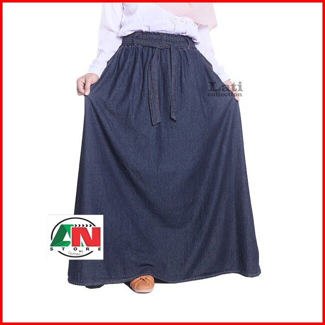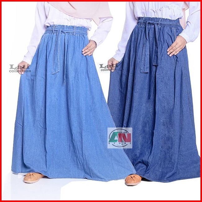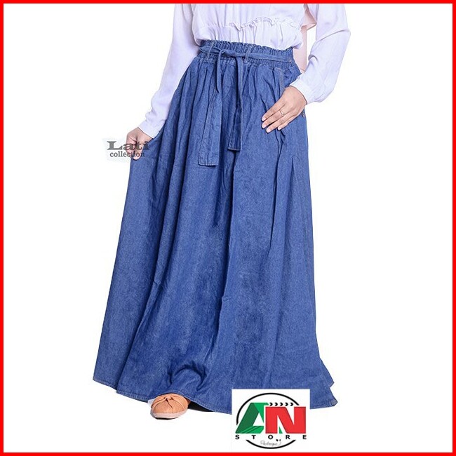 Rok Jeans Jumbo Rok Jeans Panjang Rok Denim Jumbo Line A Rok Wanita Dewasa Big Size