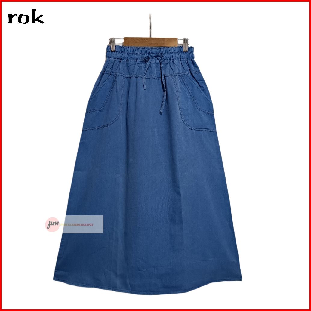 Rok Wanita Muslimah Polos Jumbo Bahan Semi Jeans Adem Dan Ga Nerawang