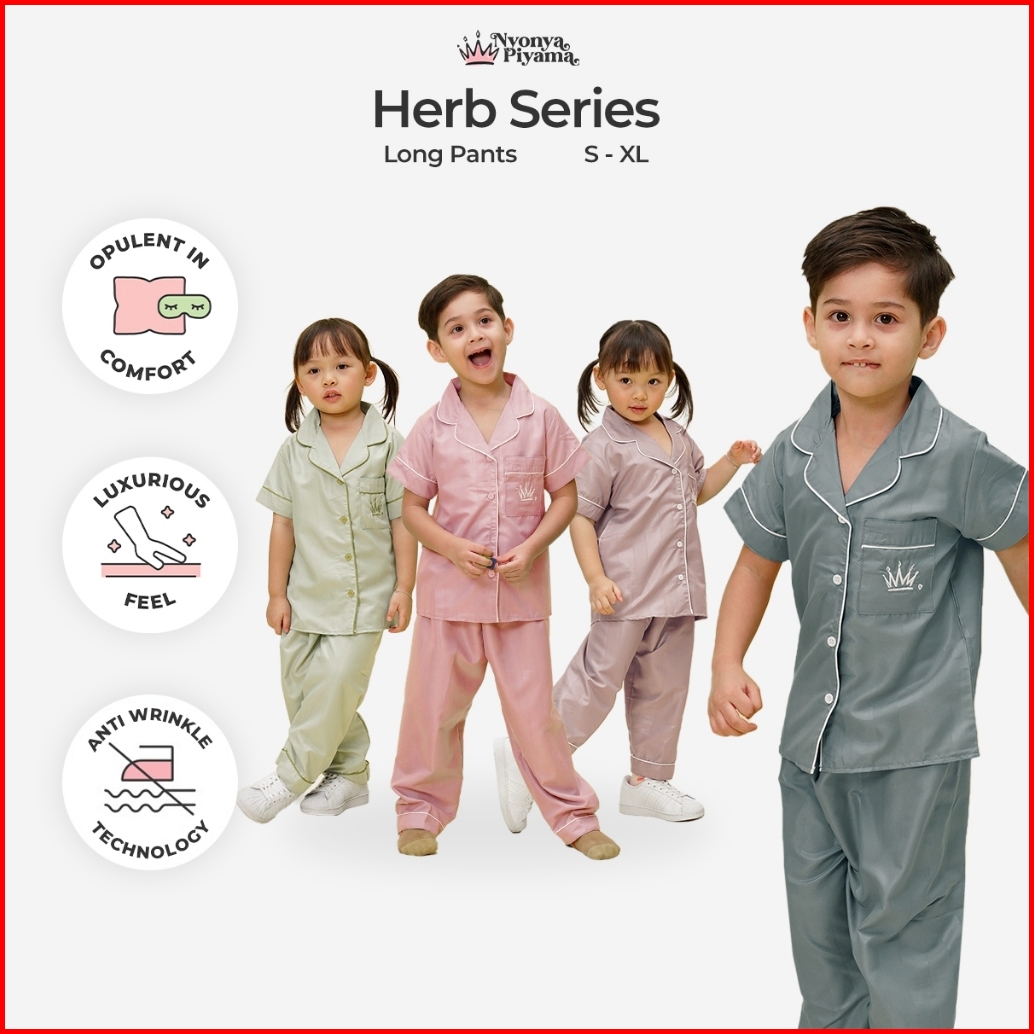 Best Seller Nyonya Piyama Poly Bamboo Set Celana Panjang Anak Polos Herb Vol 1