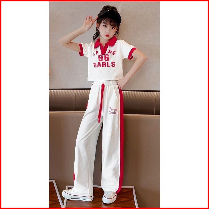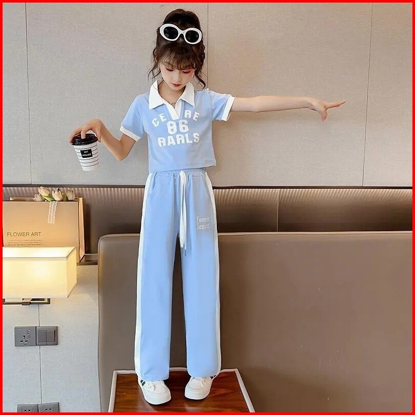 Setelan Anak Perempuan Import Size Tanggung Model Kulot Training Kerah 86 Rarls Kantong Terbaru