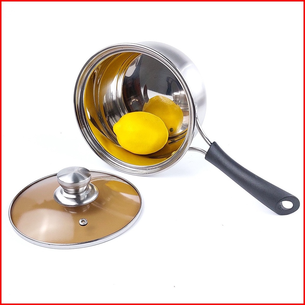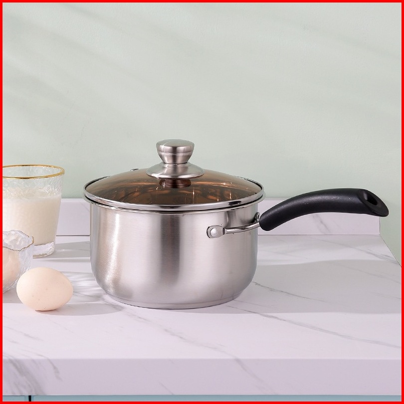 Top100 Online - Panci Susu Stainless Steel Panci Milk Pot Gagang Tutup Kaca Tebal 16cm
