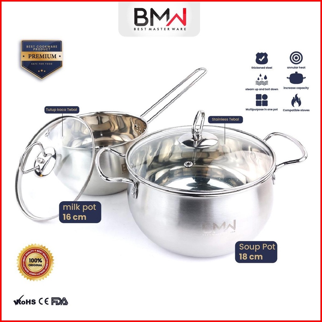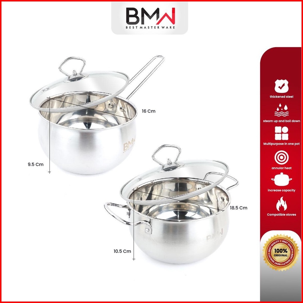 Bmw Kitchenware - Panci Set Stainless Steel Panci Rebus Kualitas Premium Ukuran 16cm Dan 18cm