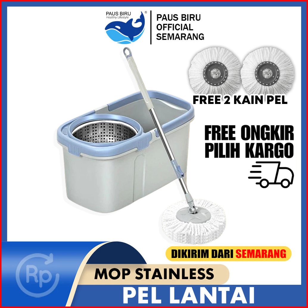 Paus Biru - Pel Lantai Ultra Spin Mop Pengering Stainless 360 Derajat Kain Microfiber