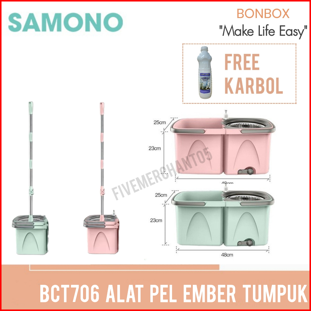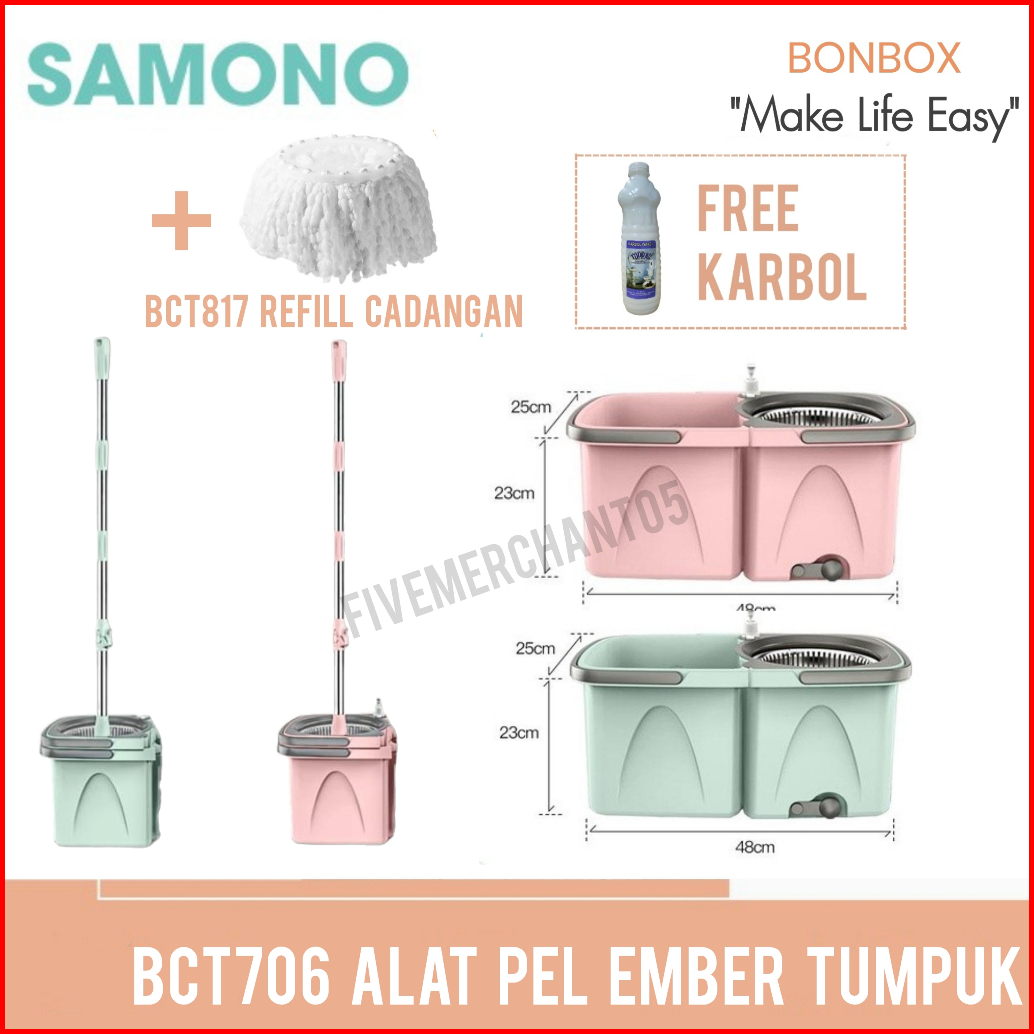 Alat Pel Otomatis Bonbox Samono Bct706 Spin Mop Ember Double Side Stainless Ember Kotak Mop Super Microfiber Ember Tumpu