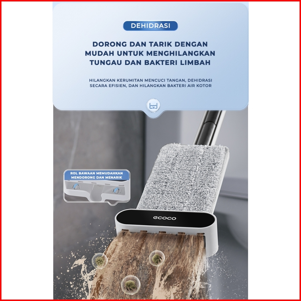 Ecoco Hand Free Mop - Pel Lantai Premium Pel Kering Pel Basah Pembersih Lantai Anti Bakteri