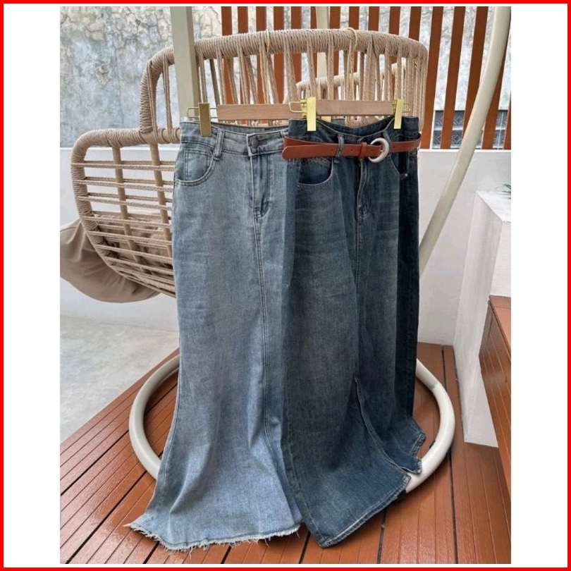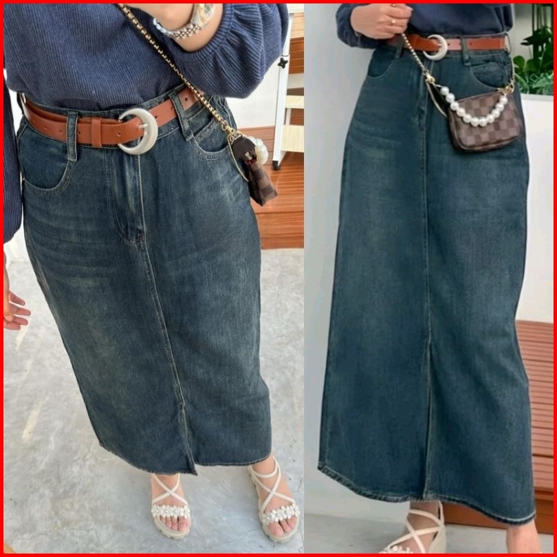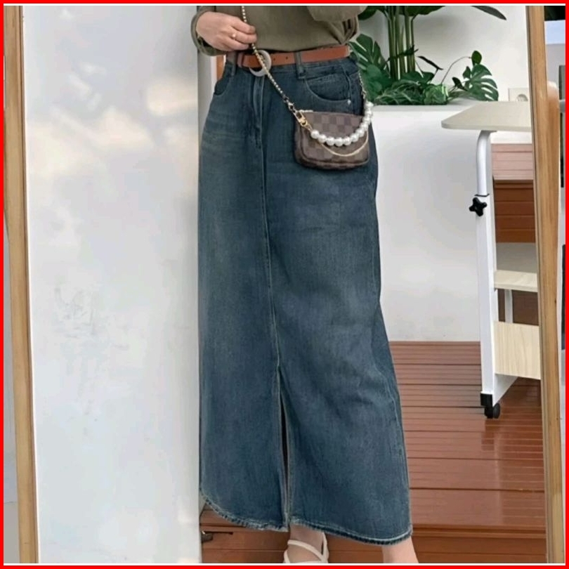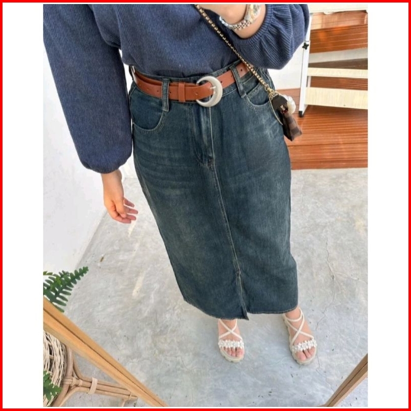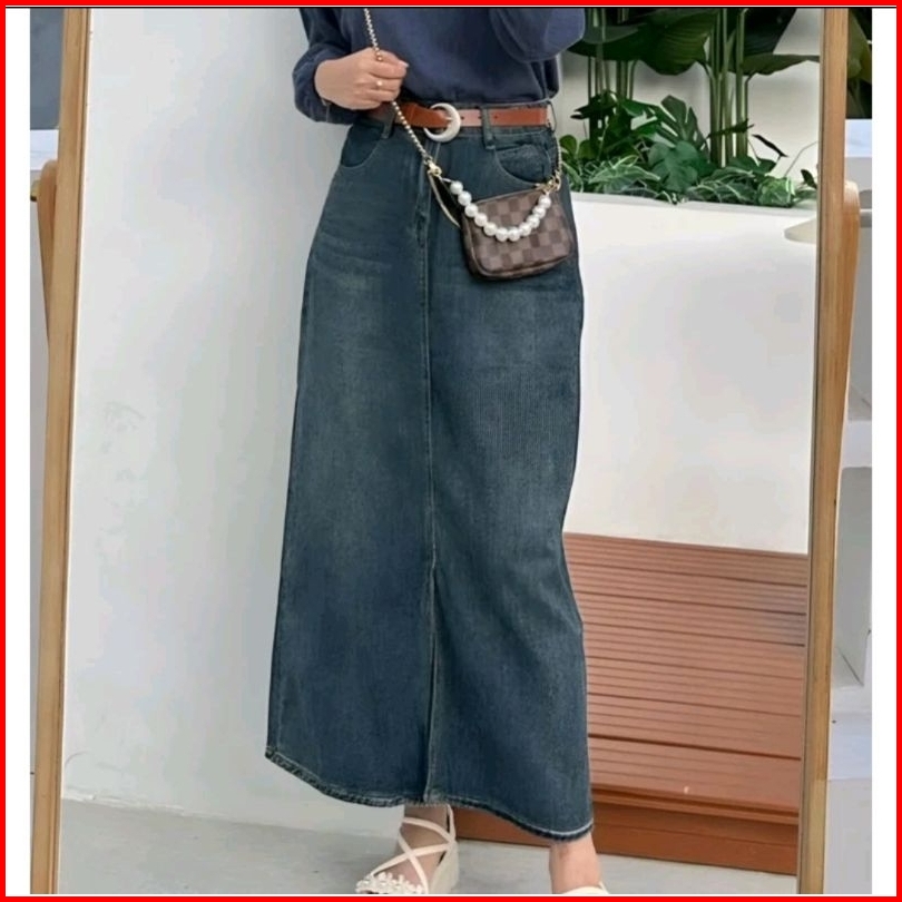 Pg Jeans - Rok Span Jeans Skirt Cessa Panjang Wanita Kancing Karet
