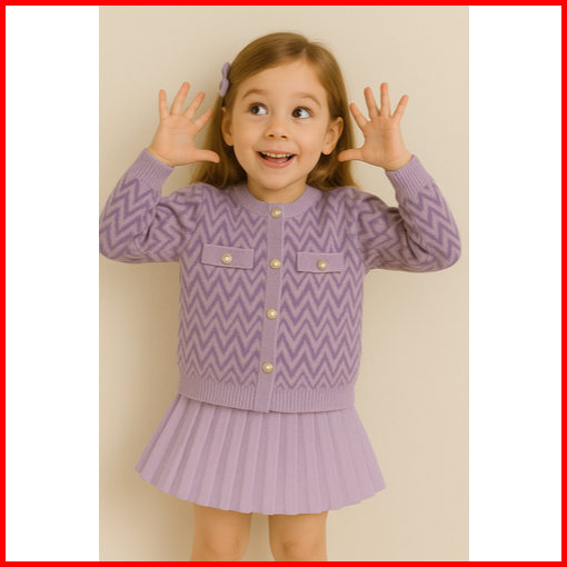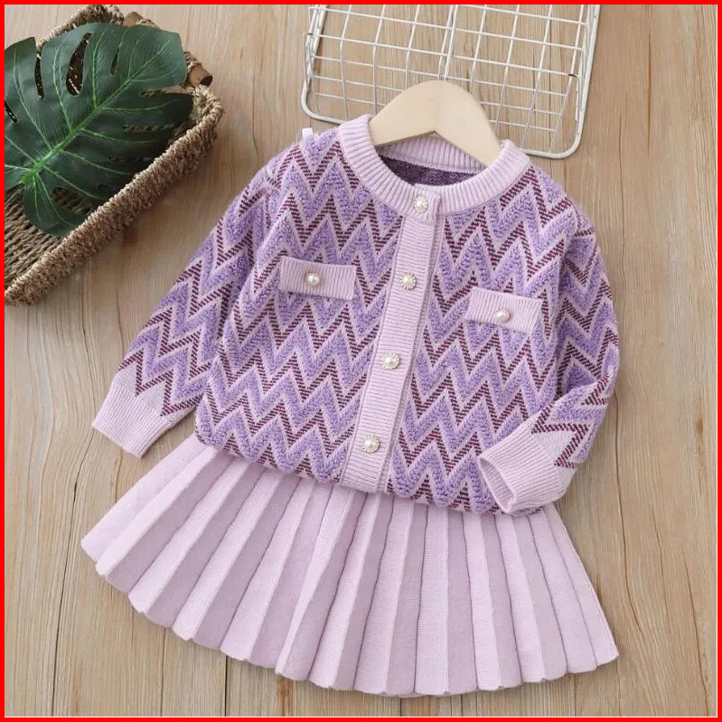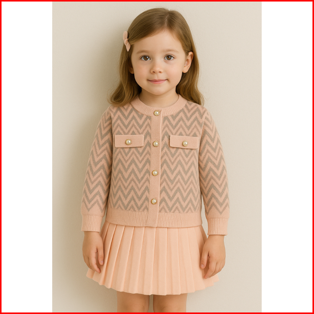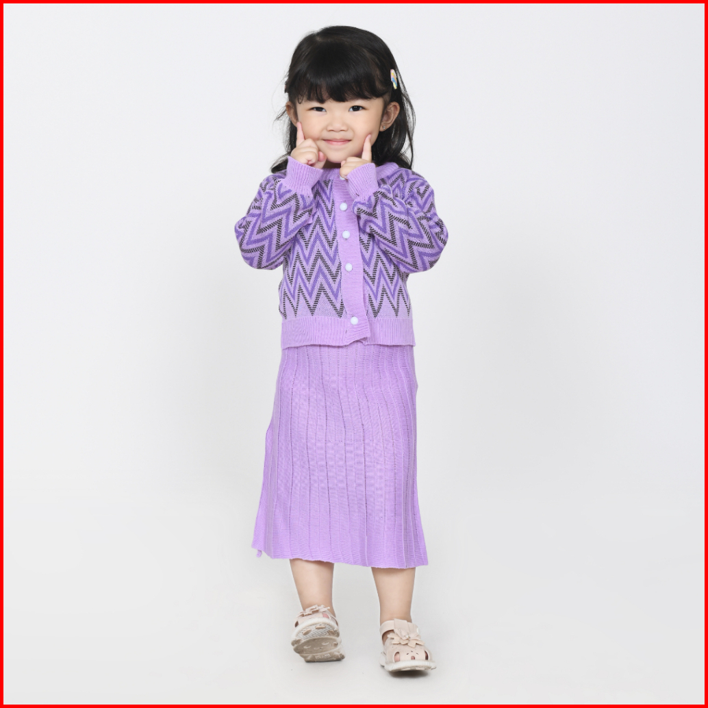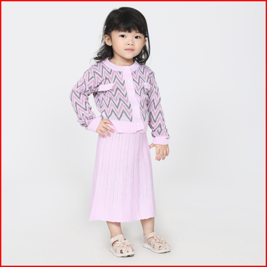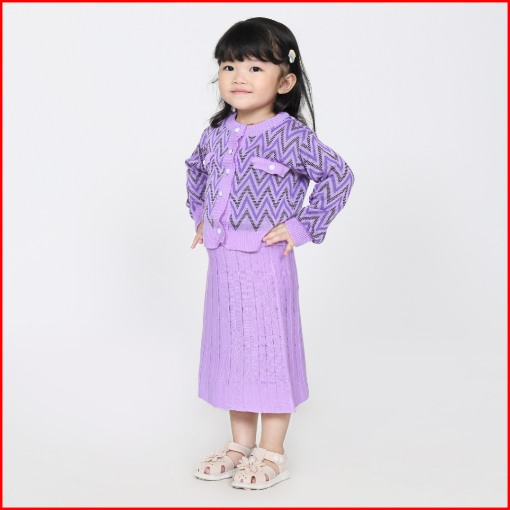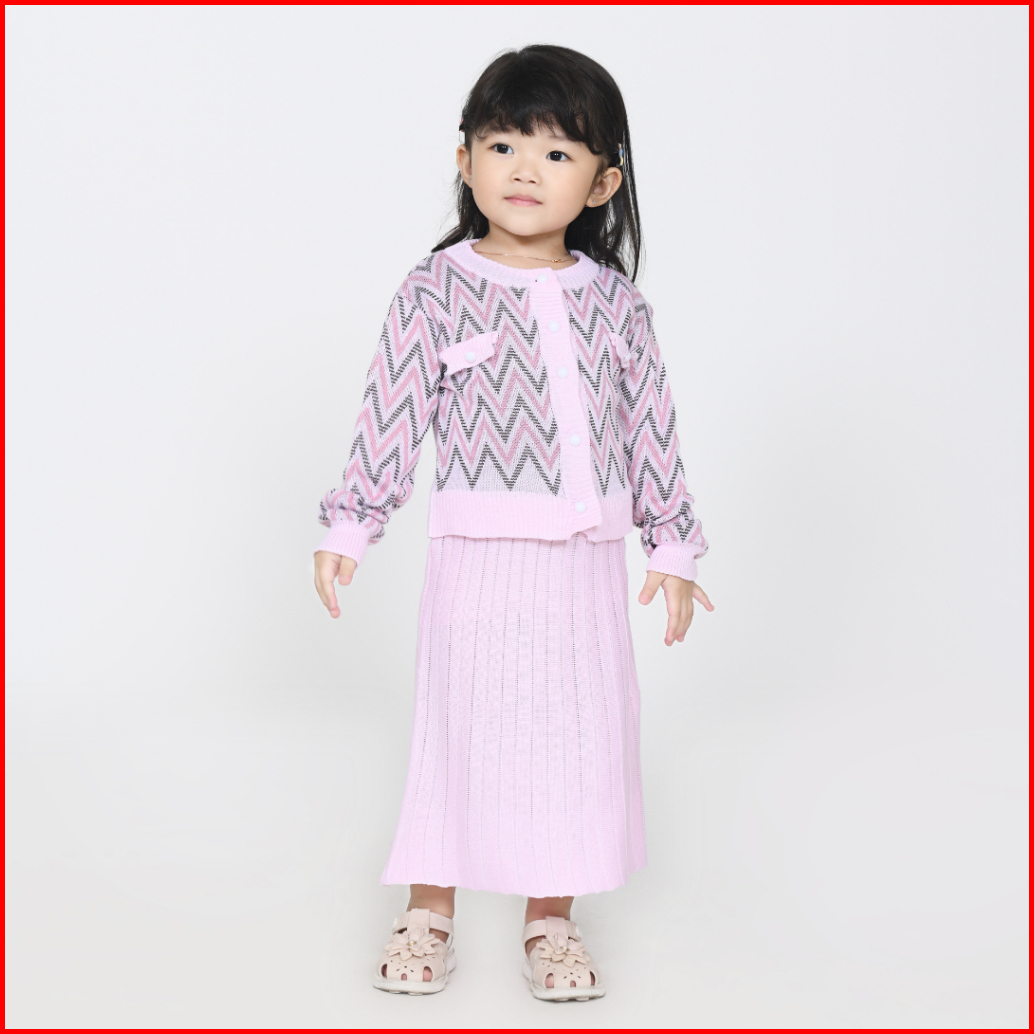 Zahra - One Set Anak Perempuan Herbone Set Kids Pakaian Rajut Premium Bermotif Zigzag Korean Usia 1-6 Tahun
