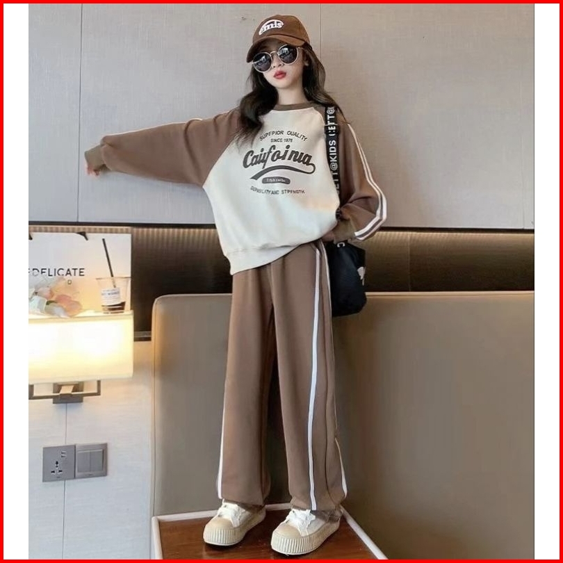 Ll Setelan California Setelan Anak Perempuan Fashion Kid S Bahan Katun Babyterry Tebal List Usia 5th-14th Best Seller