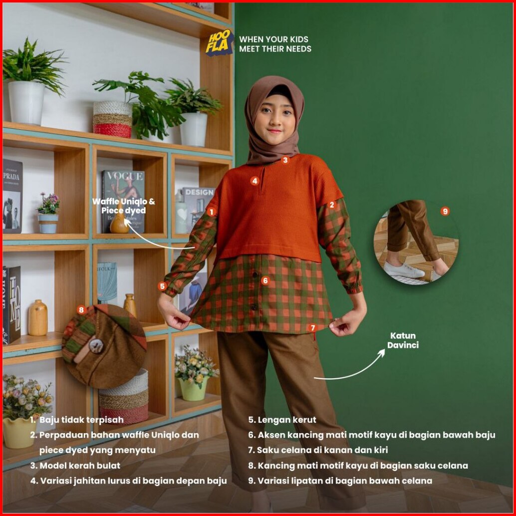 Hoofla Sabina Baju Celana Anak Perempuan 5-12 Tahun Muslimah Setelan Casual Terracotta Moss