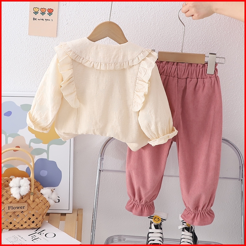 Setelan Anak Perempuan Import Stelan Kaos Anak Cewek Impor Kaos Lengan Panjang Motif Polos Dengan Model Pita Besar Warna