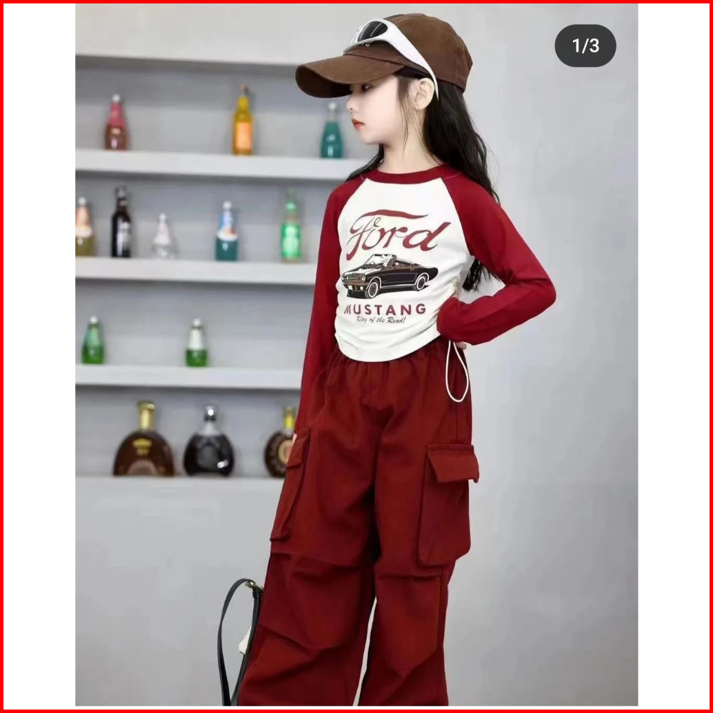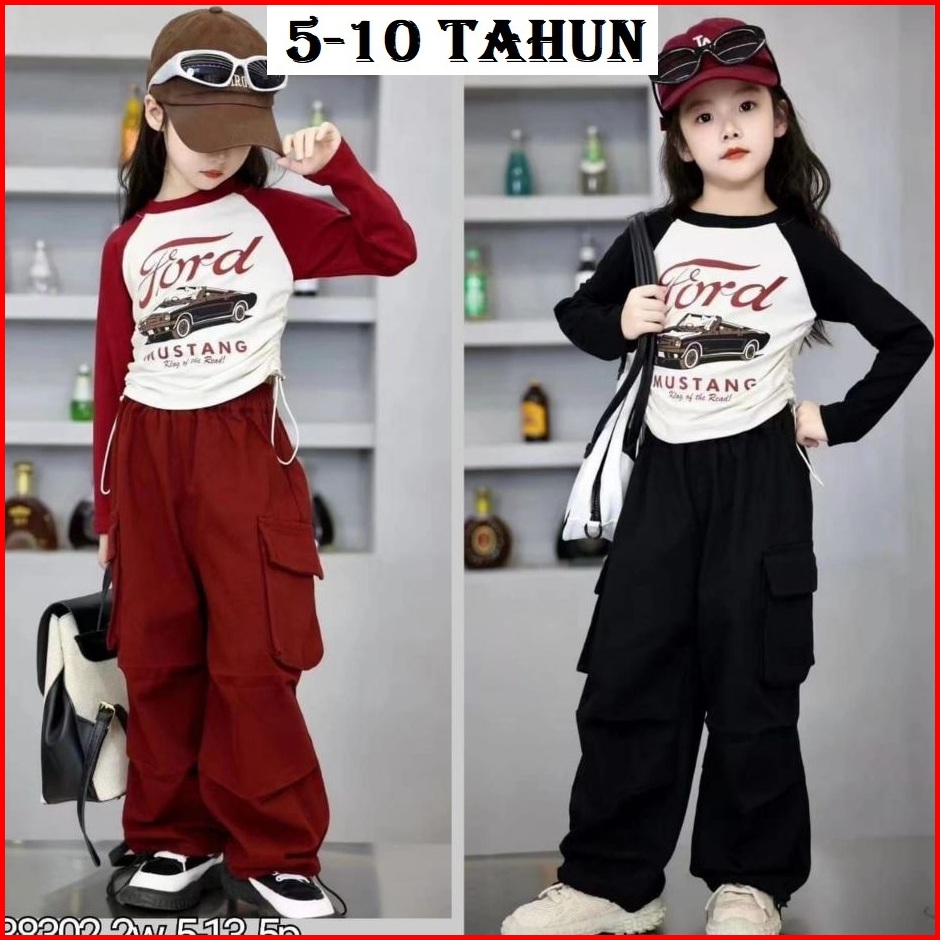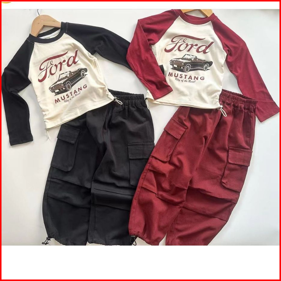 Meandboss Ssp5-setelan Set Anak Perempuan Besar Tanggung Tanggung Ford Mustang Celana Kargo