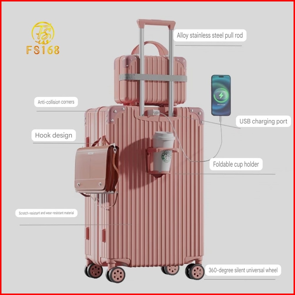 Fs168 Koper Pengisi Daya Usb 20 Inch Tempat Cangkir Air Pria Dan Wanita 24 Inch Kotak Penerbangan 22 Inci Kotak Kata San