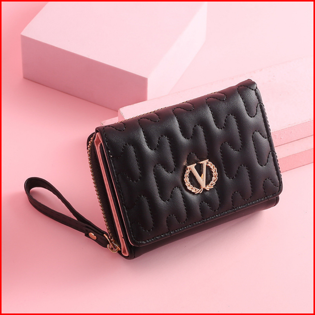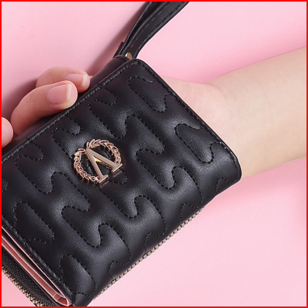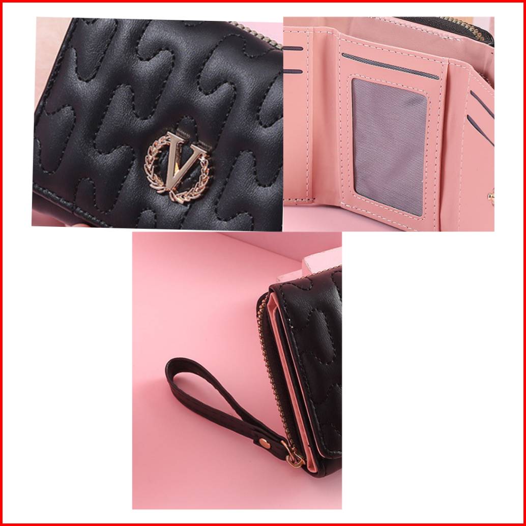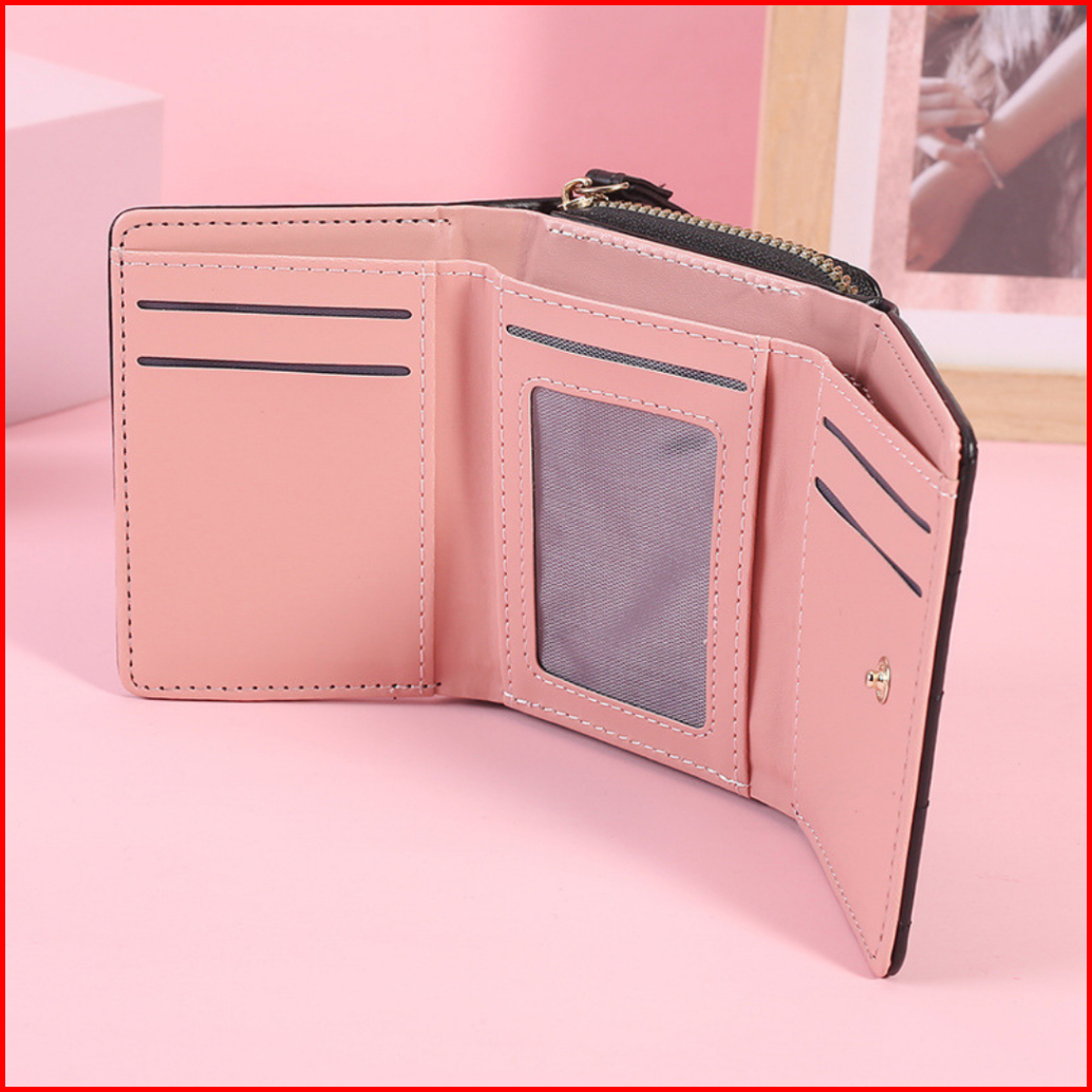 Dompet Lipat Wanita Kecil Kulit Premium Hitam Trixa Wa884b5 Mini Slot Kartu Resleting Uang Koin Remaja Kekinian Cewek Si