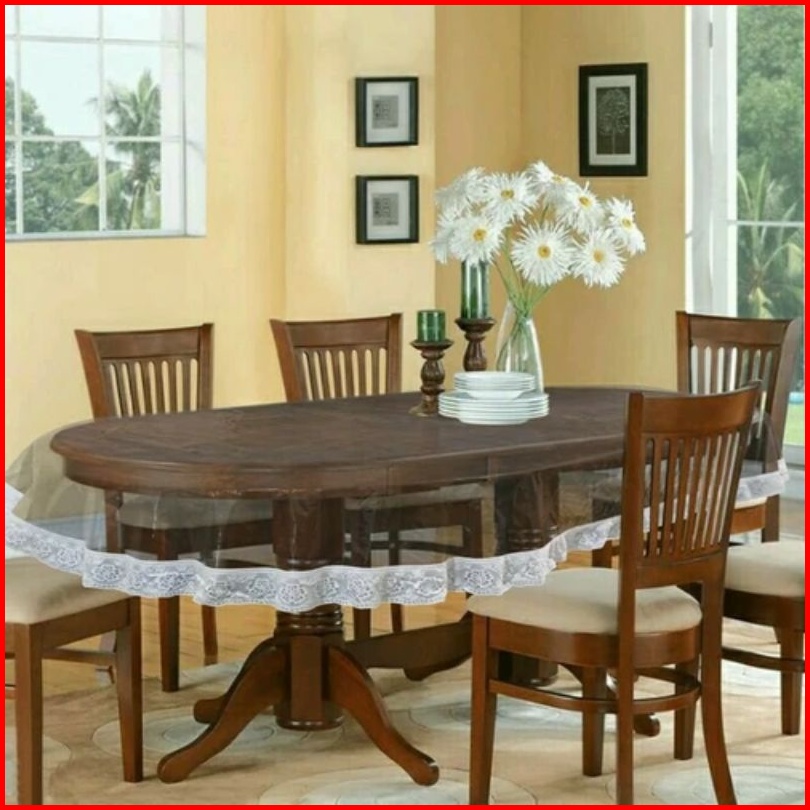 Taplak Meja Makan Plastik Pvc Mewah Oval Kursi 6-8