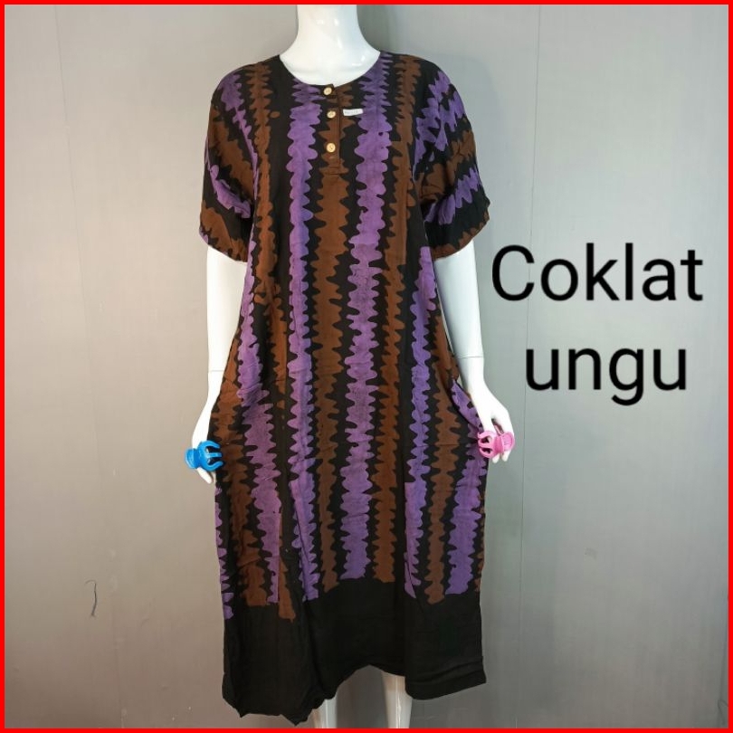 Daster Kencana Ungu Cetak Cap Ld110 Pb120 Lebel Hitam Busui