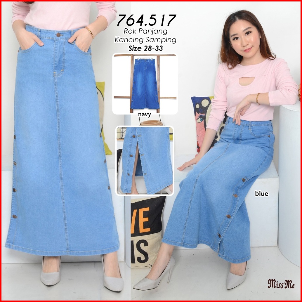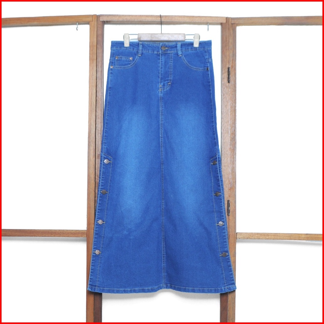 Cosmopolite Rok Panjang Kancing Samping Jeans Denim Wanita Dewasa Premium Quality