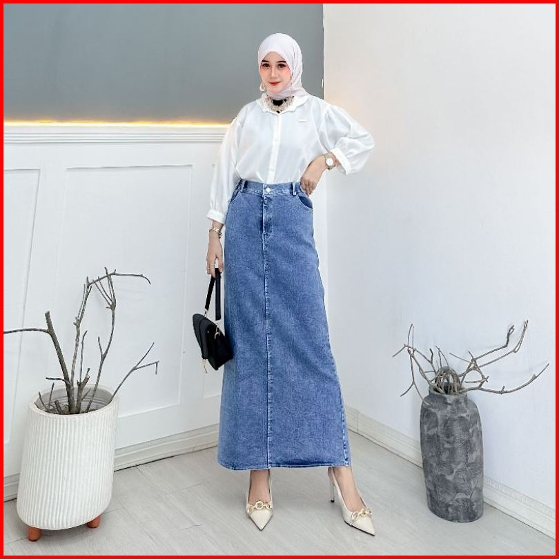 Highwaist Rok Jeans Rok Jeans Skirt Theana Rok Span Belah Belakang