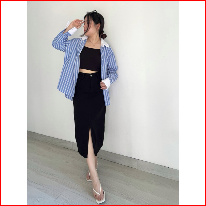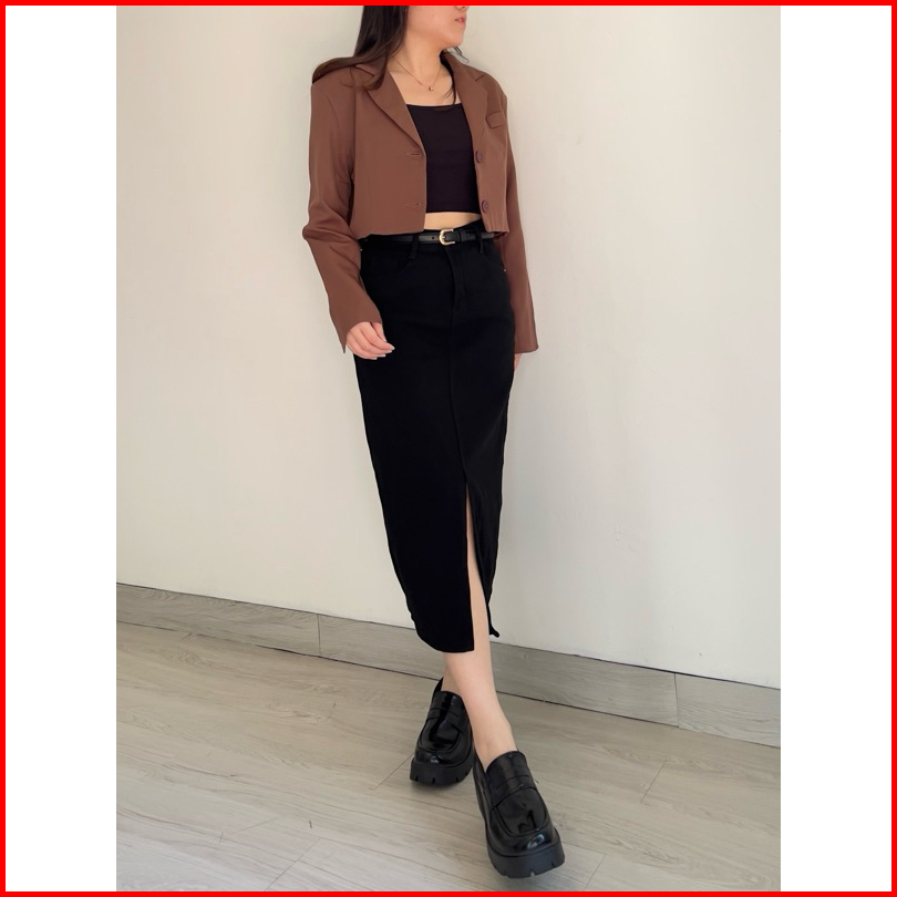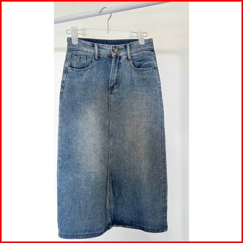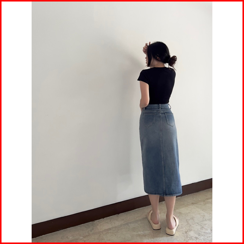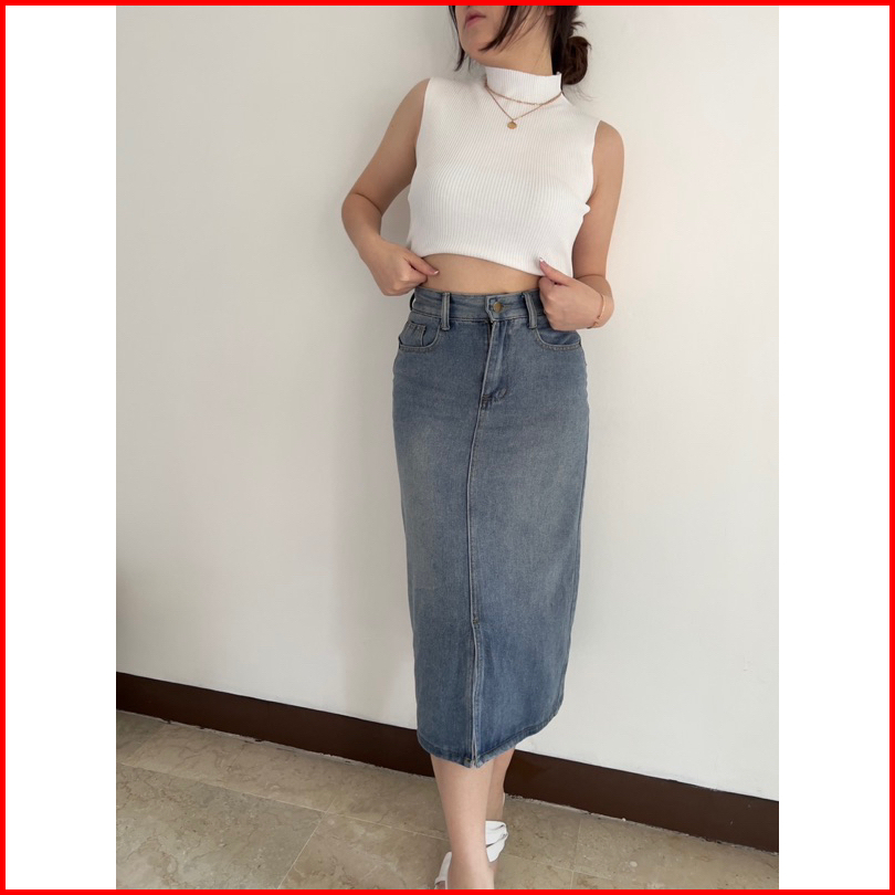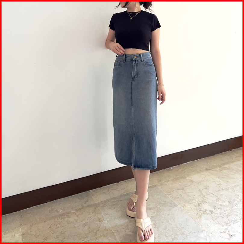 Klavee - Hazel Denim Skirt Rok Jeans Wanita Midi Korean Style Skirt