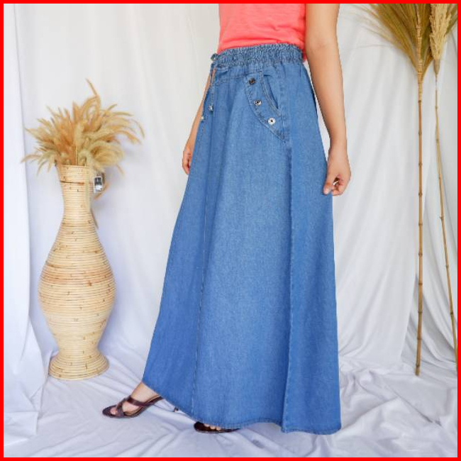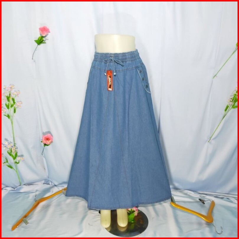 Rok Wanita Panjang Jeans Polos Denim Original Ukuran Standar Dan Jumbo Model Line A Span