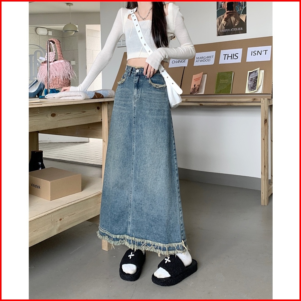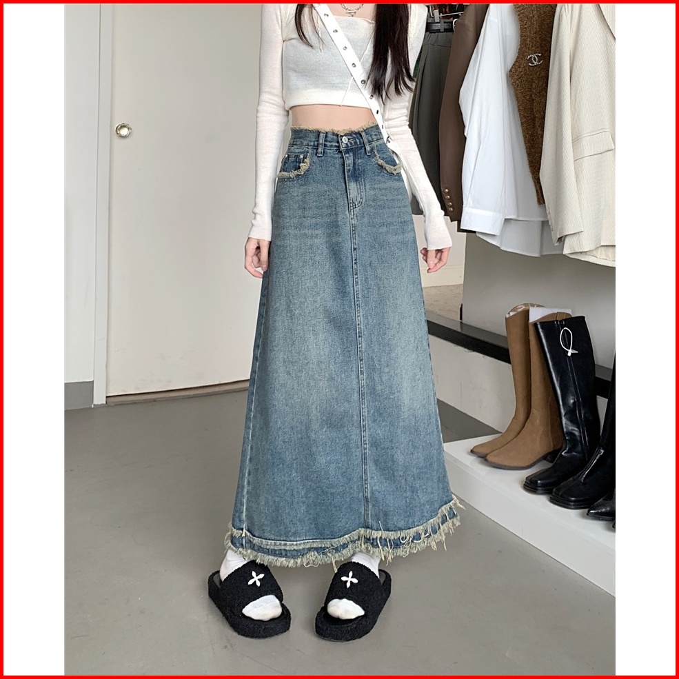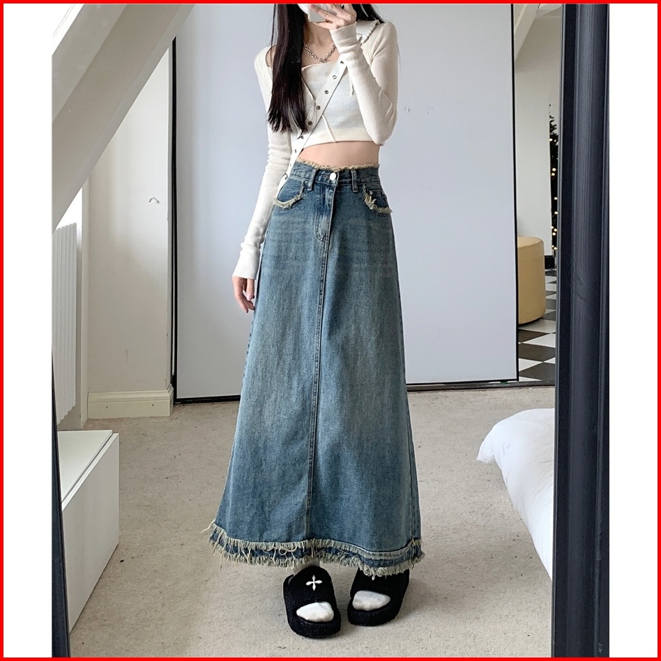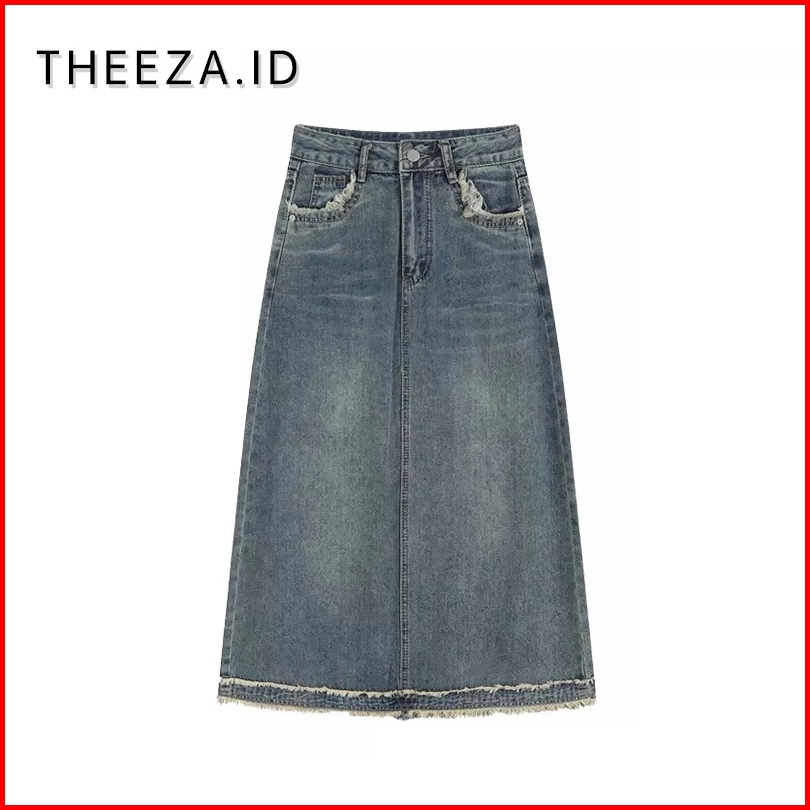 Theeza-rok Panjang Biru Vintage Jeans A-line Highwaist Skirt Rok Panjang Highwaist Rok Jeans Panjang