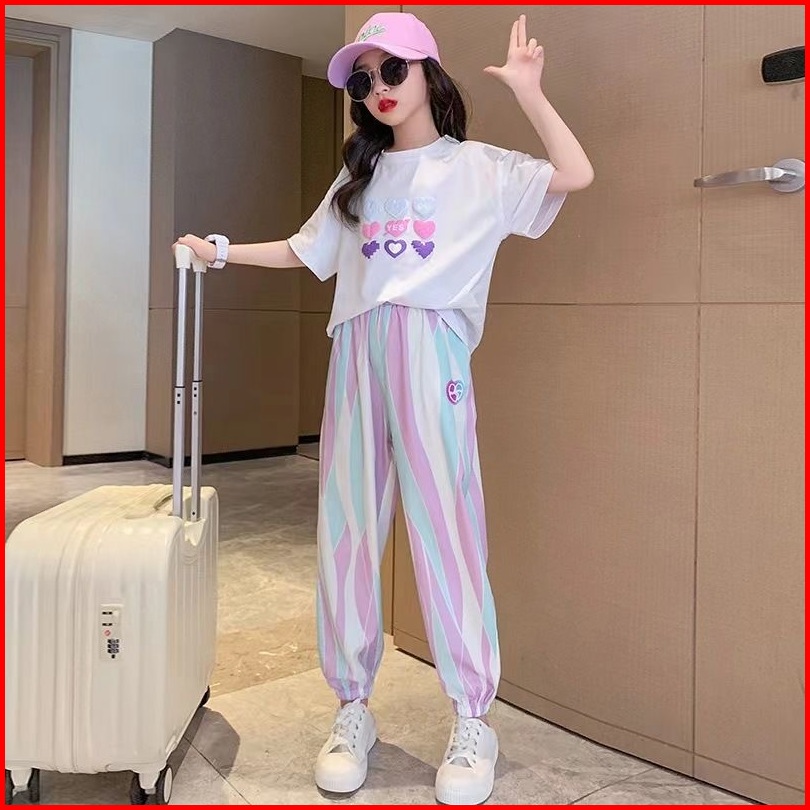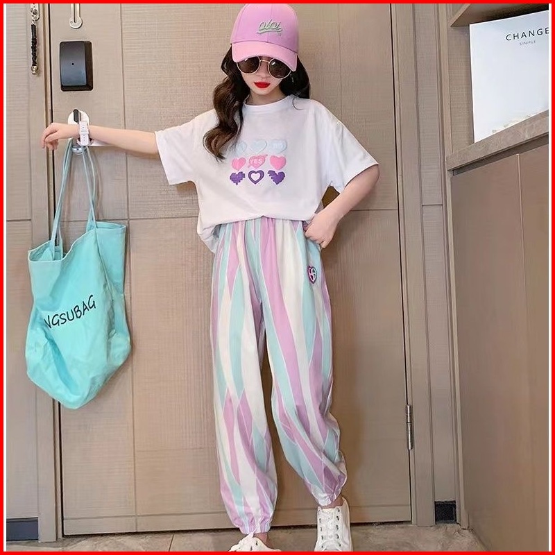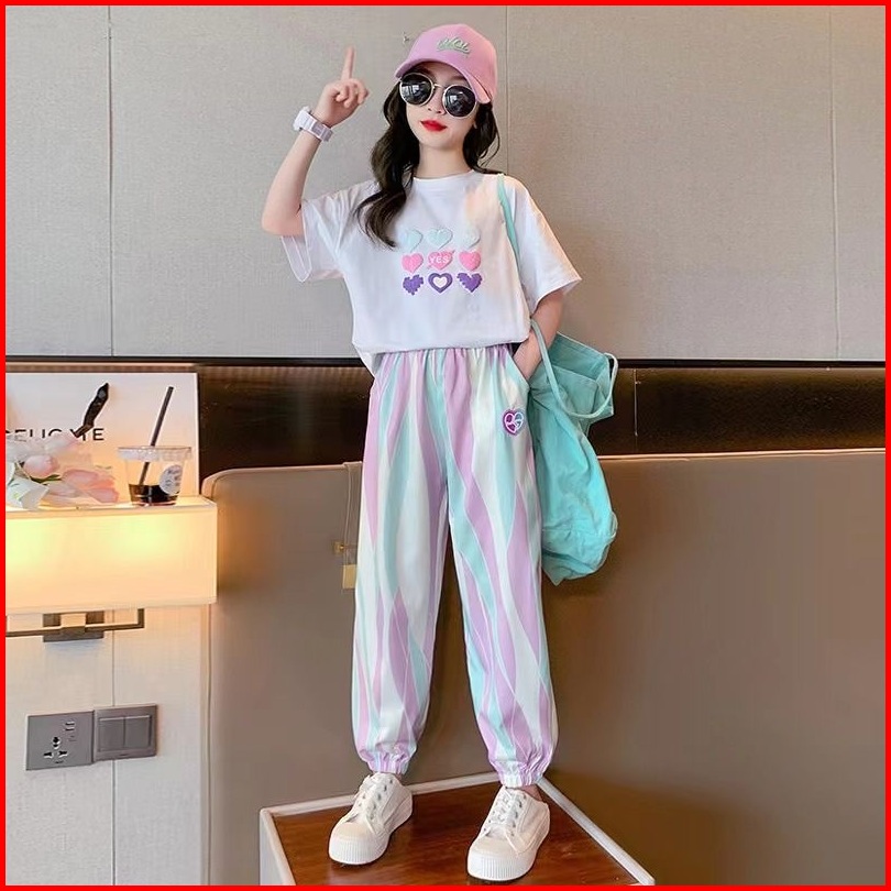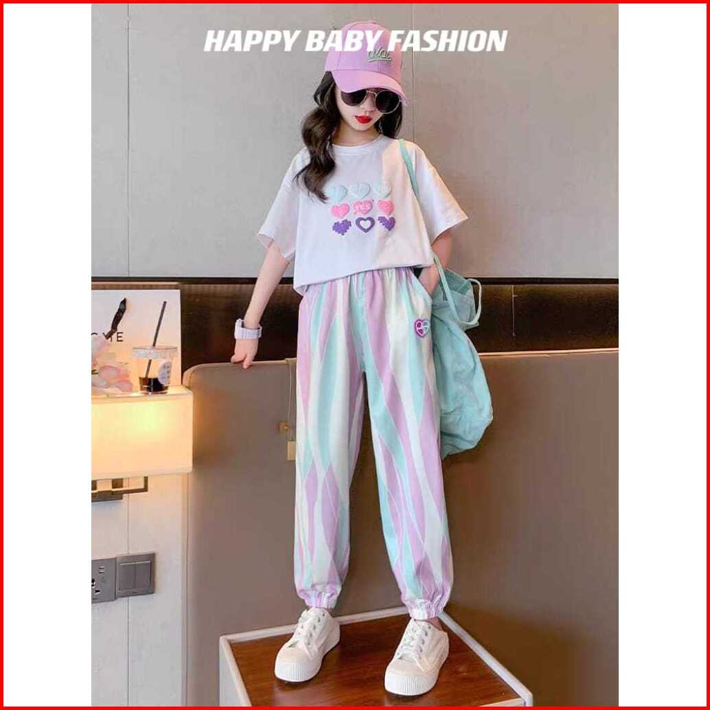 Happybabby5-15 Tahun Baju Setelan Cewek Motif Abstrack Lengan Panjang Celana Panjang Impor Tz-49