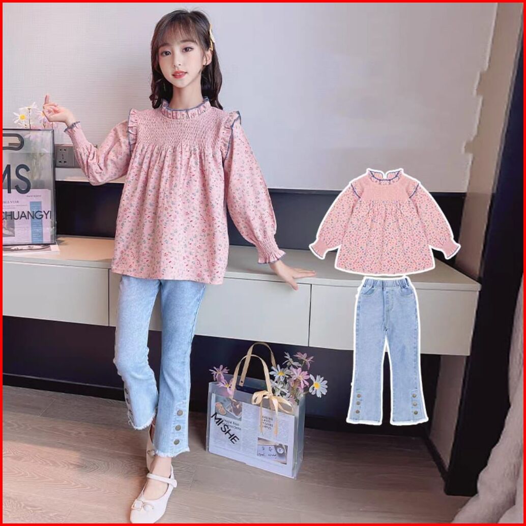 4-10tahun Set Girl Setelan Anak Perempuan Bunga Terbaru