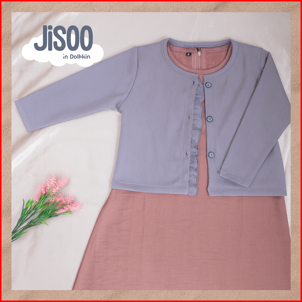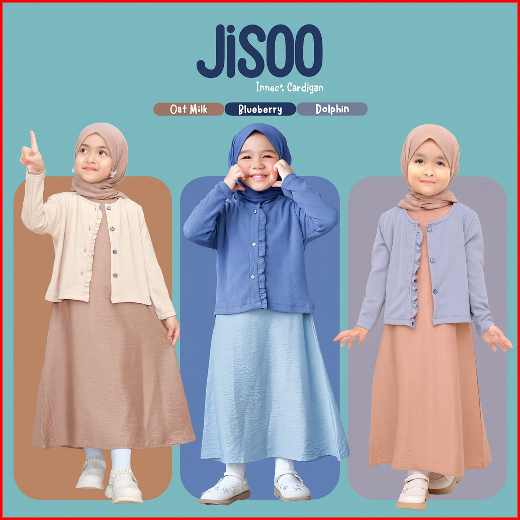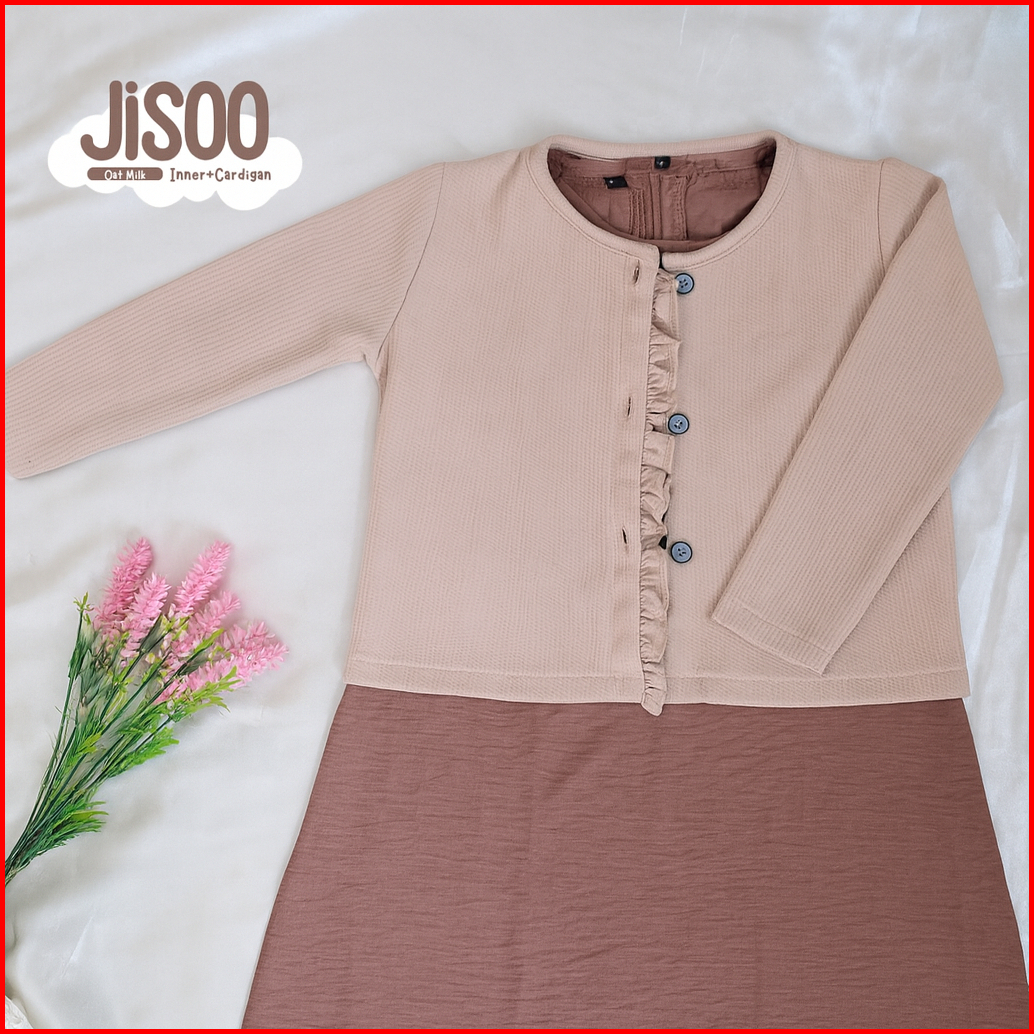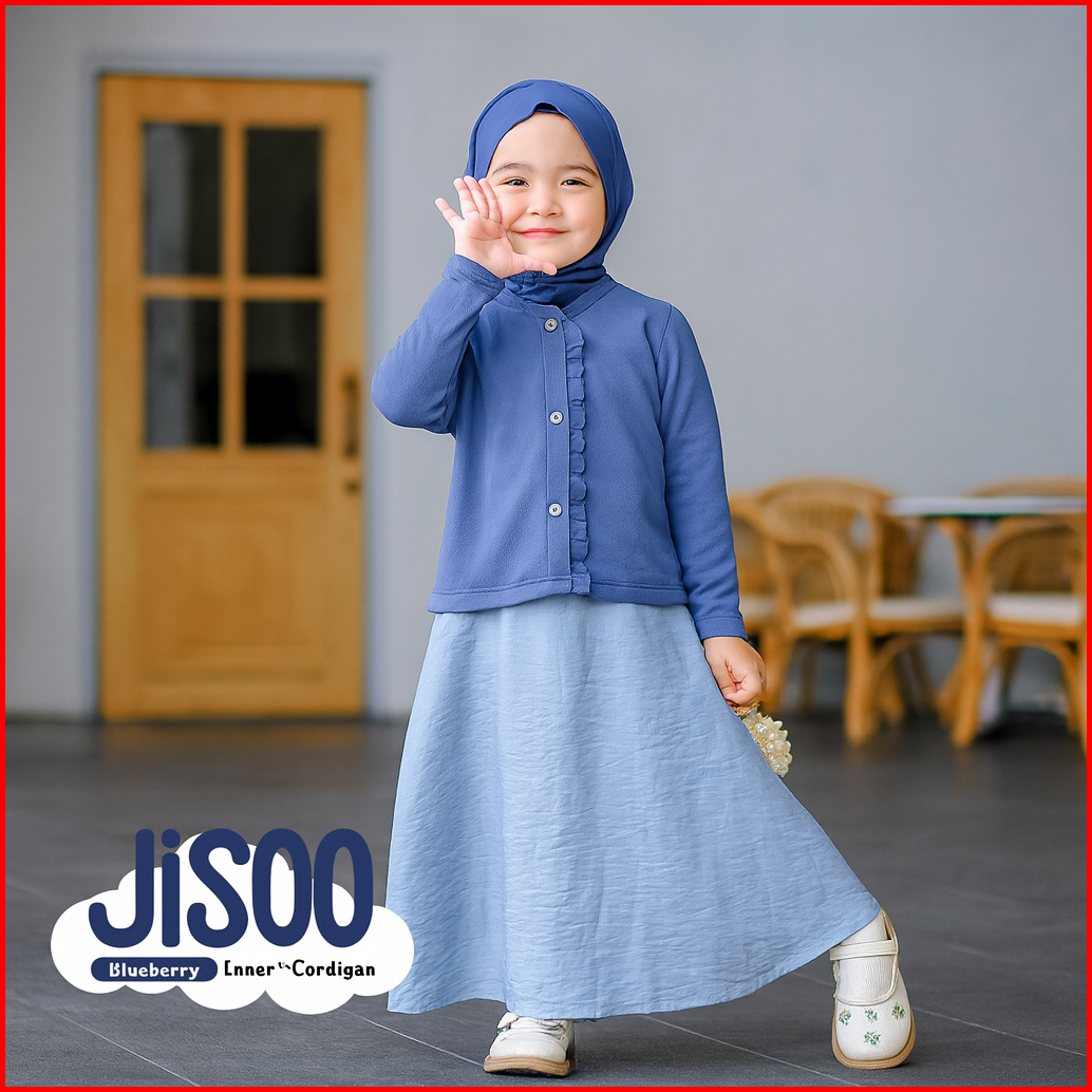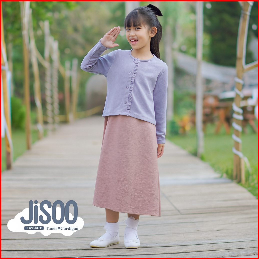 Jisoo Setelan Anak Perempuan 1-8 Tahun Inner Dress Cardigan Muslimah Korea Nyaman Stylish