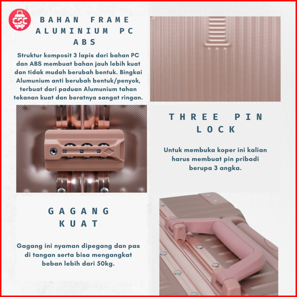 8118 Koper Sultan 20 24 28 Inch 4 Roda 360 Rotasi Ringan Tahan Air Anti Maling