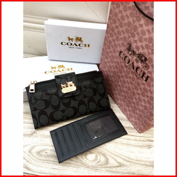 Dompet Panjang Kartu Coach Double Zip Free Box Free Paperbag Import