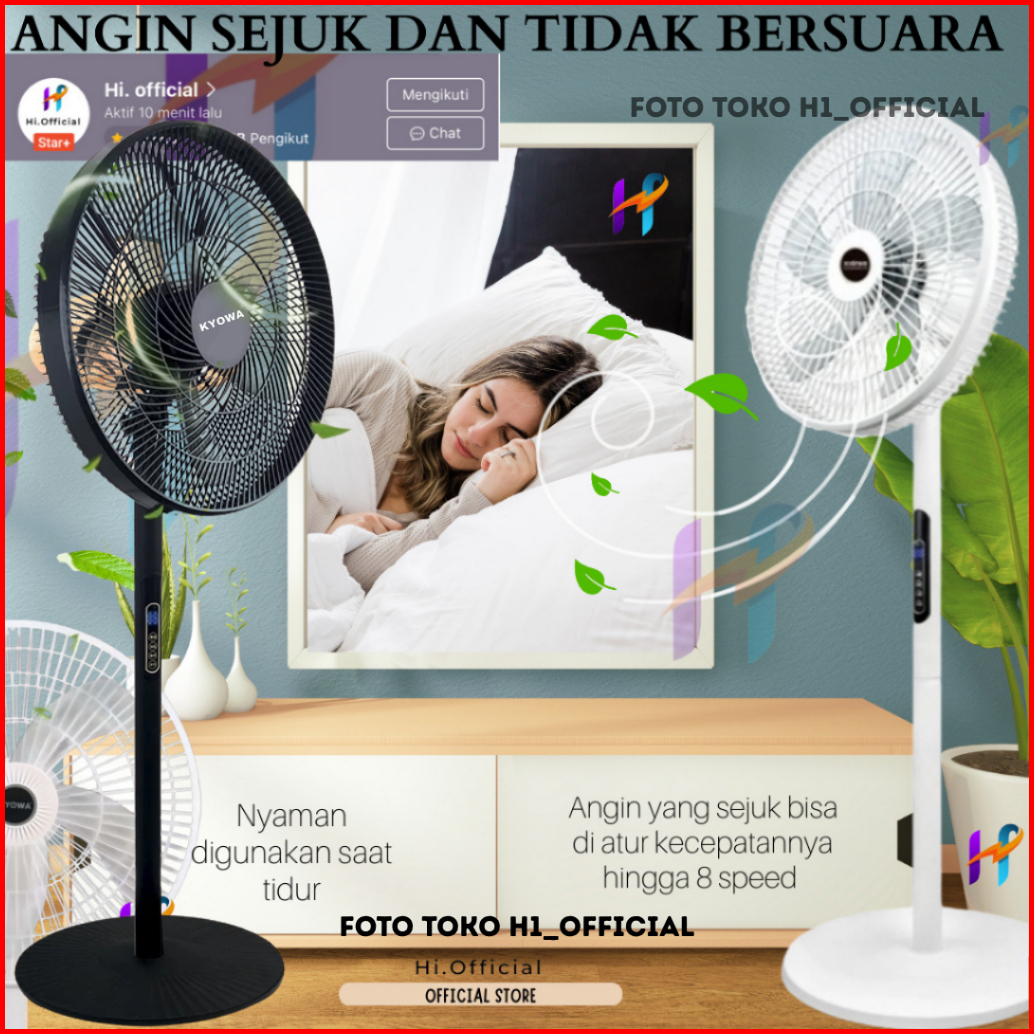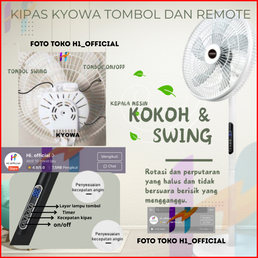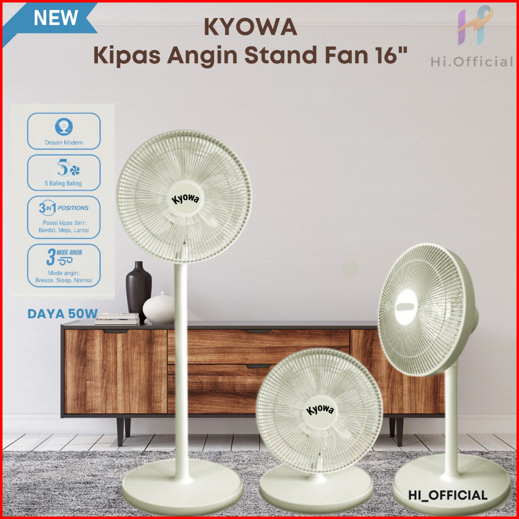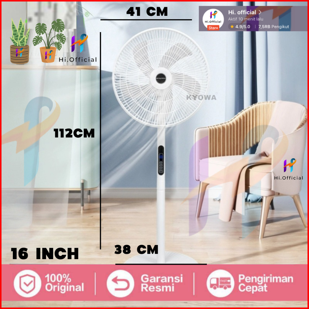 Kipas Angin Standing Kyowa Kw-1608a Kipas Berdiri Dengan Tutup 5 Baling Baling Kipas Remote Desain Modern