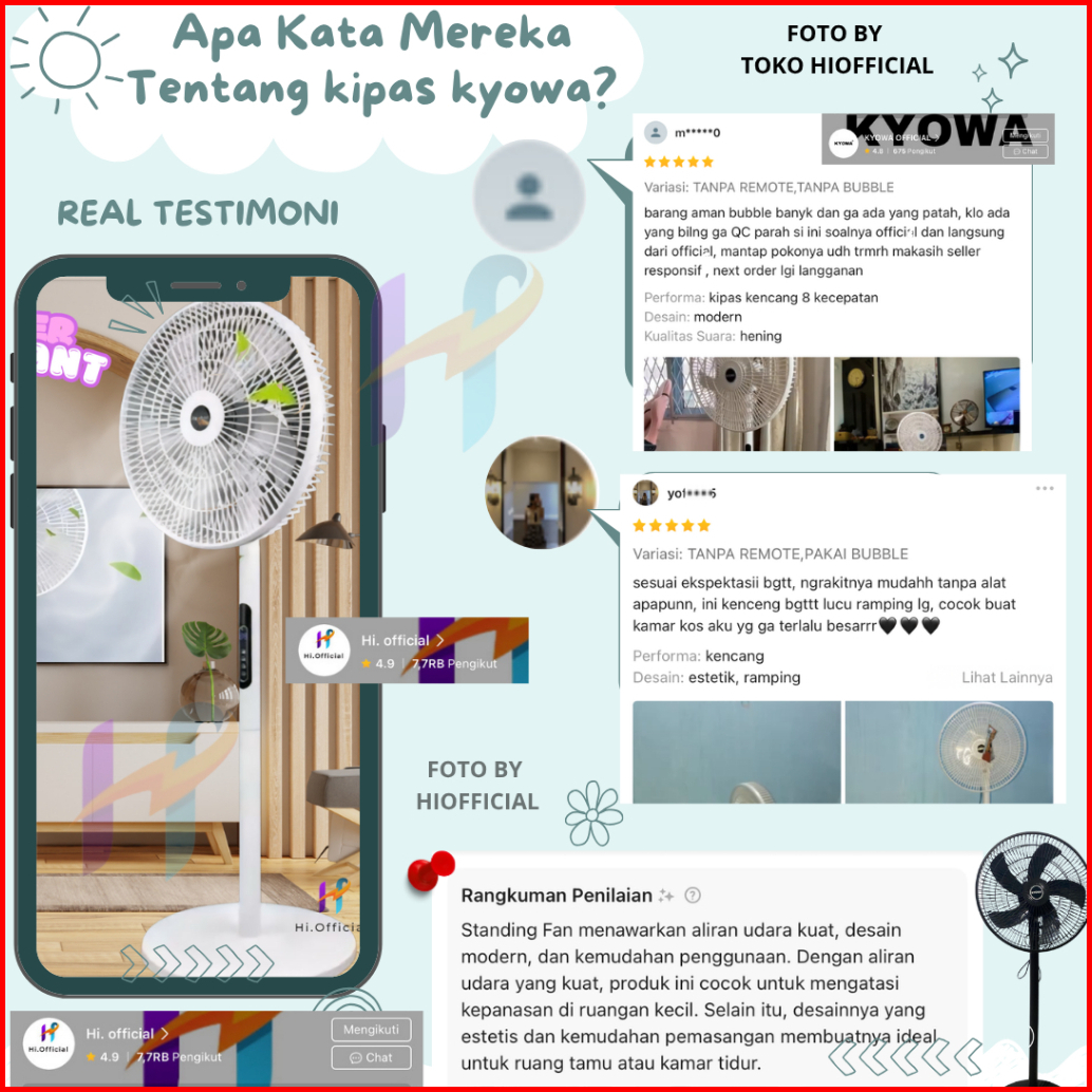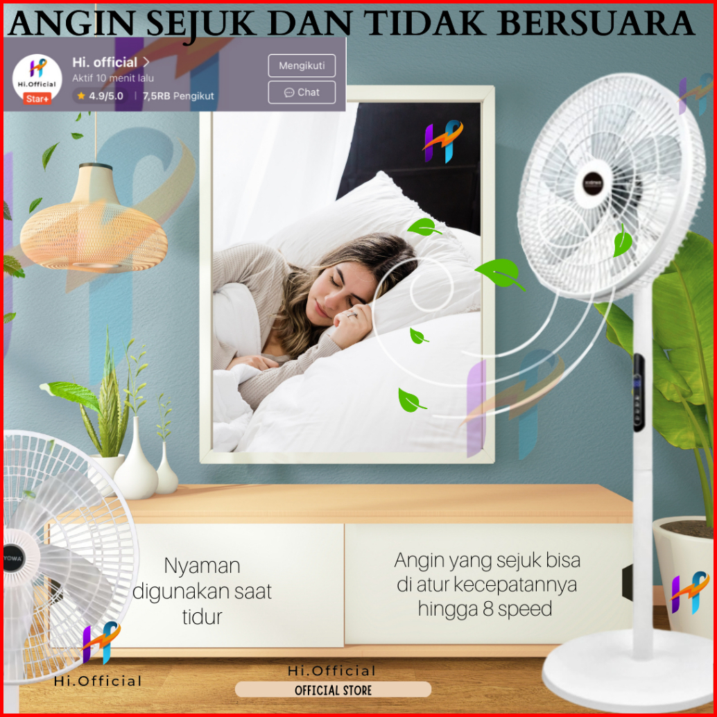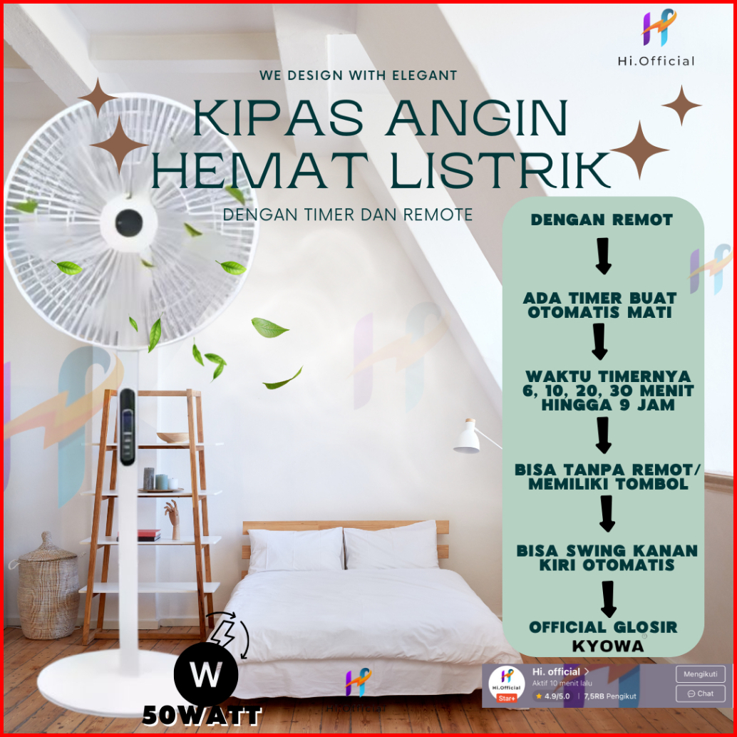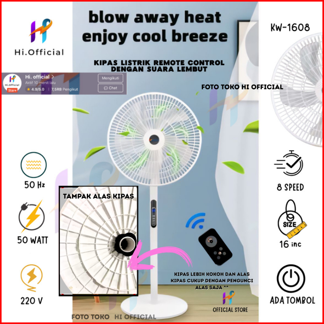 Kipas Angin Standing Kyowa Kw-1608a Kipas Berdiri Dengan Tutup 5 Baling Baling Kipas Remote Desain Modern