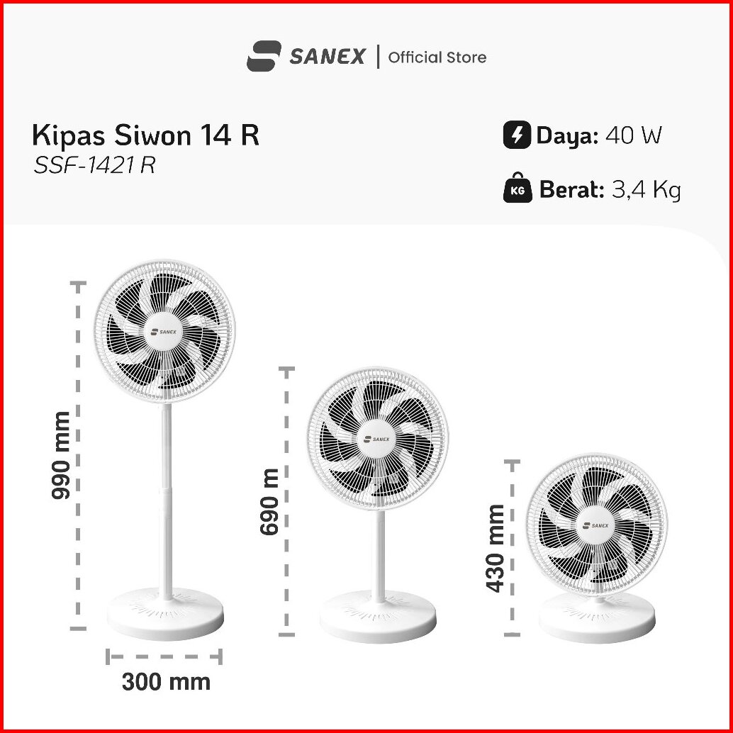 Sanex Siwon Kipas Angin Standing Berdiri 3in1 14 Inch Ssf-1421 R