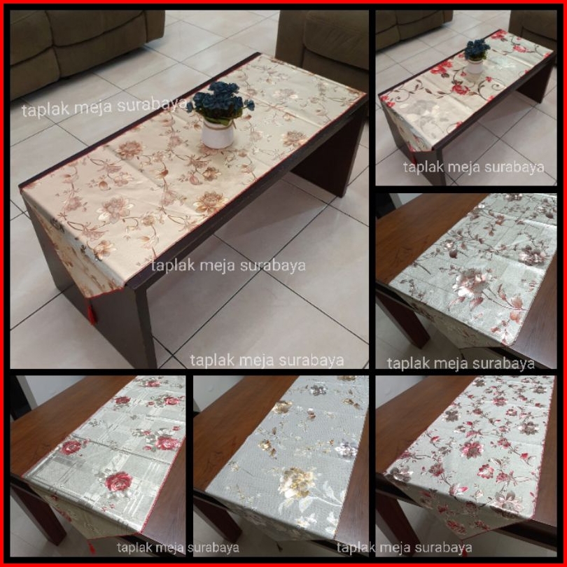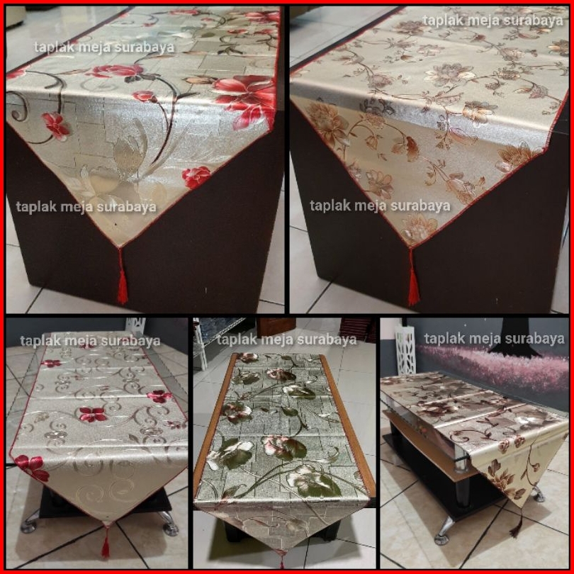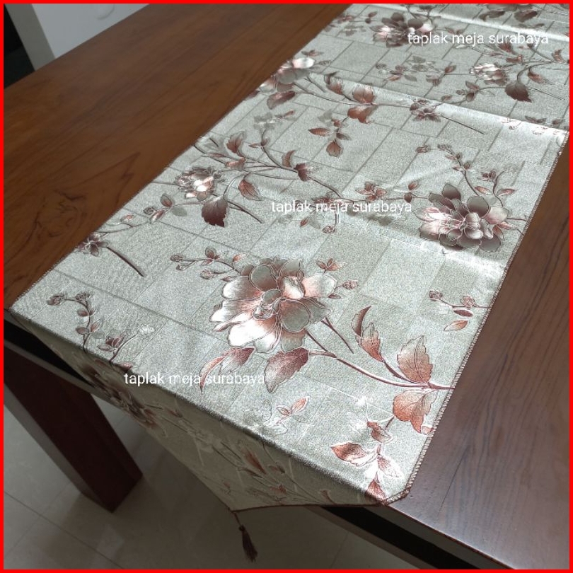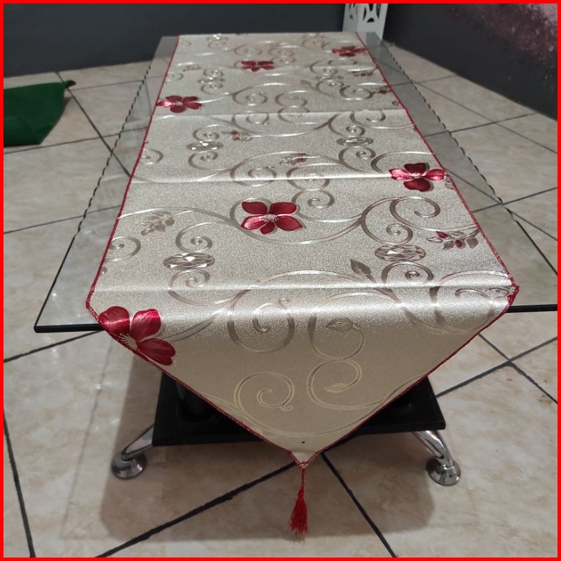 Taplak Meja Tamu Panjang Table Runner 40 X 150 Cm Anti Air Waterproof Warna Coklat Merah Mewah