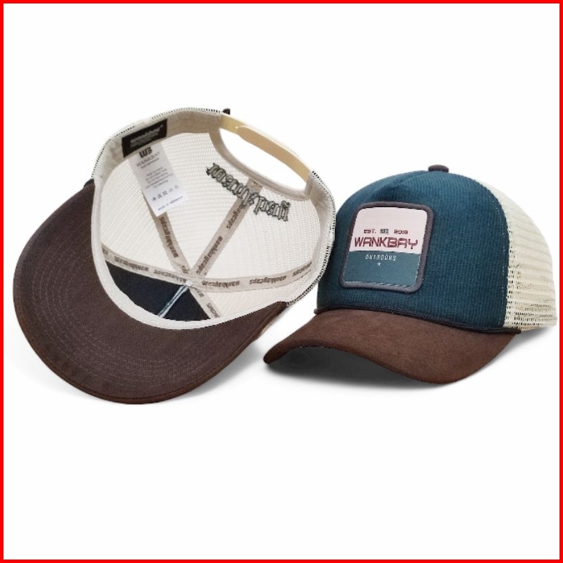 Topi Wankbay Outdoor Clothing Trucker Corduroy Aplikasi Suede Plastisol Bordir 3d