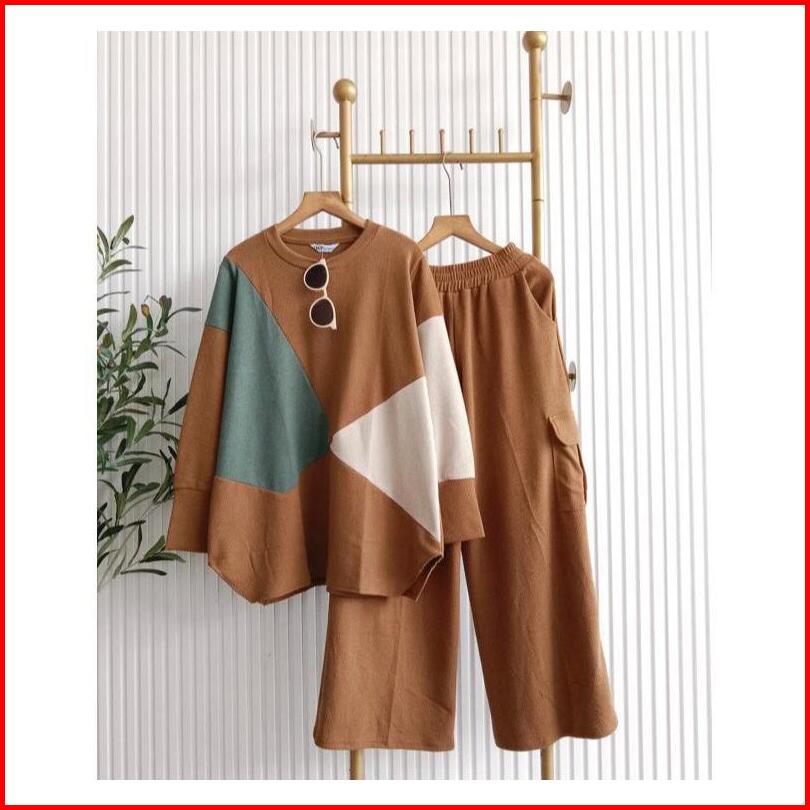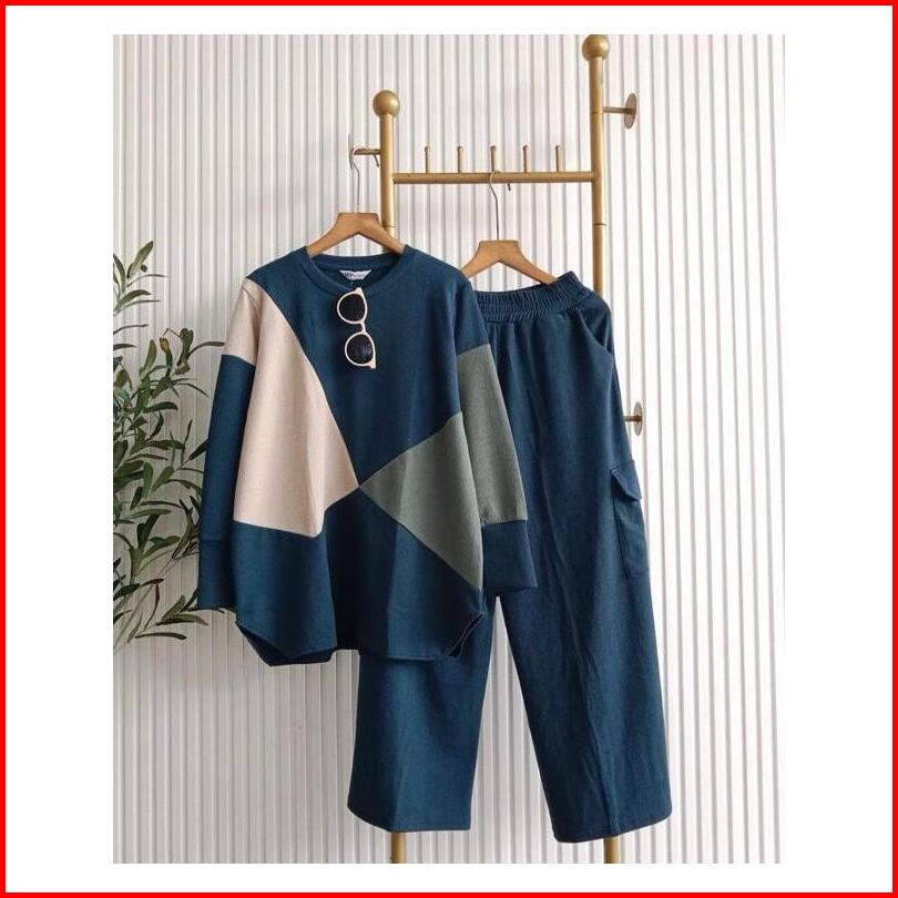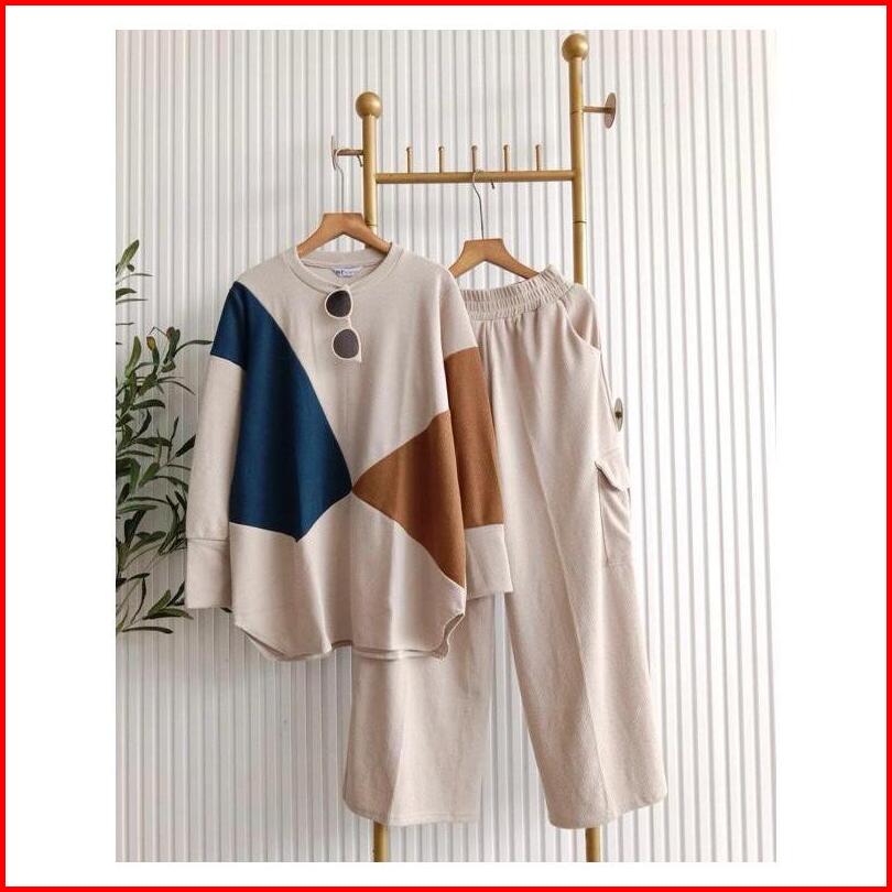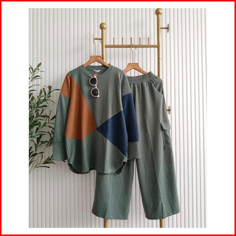 Zivani Set Rainbow Celena Cargo Crinkle Airflow Setelan Kombinasi Polos One Set Polos Rere Set Set Wanita Celana Cargo S