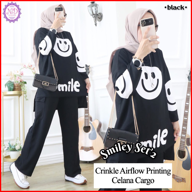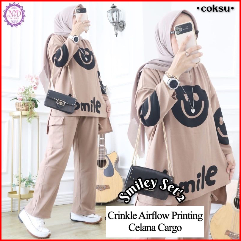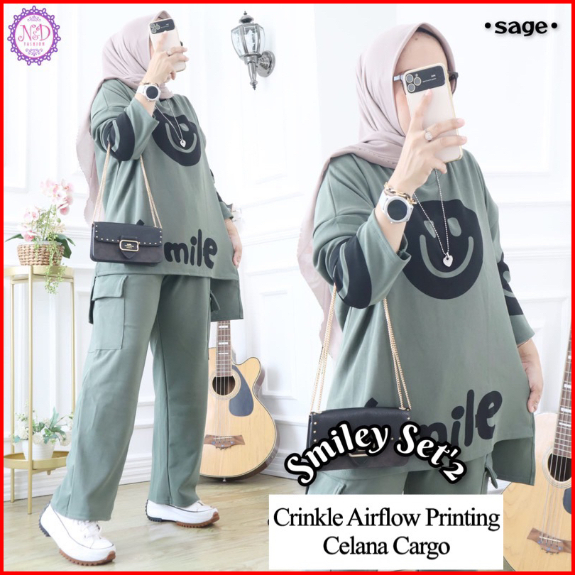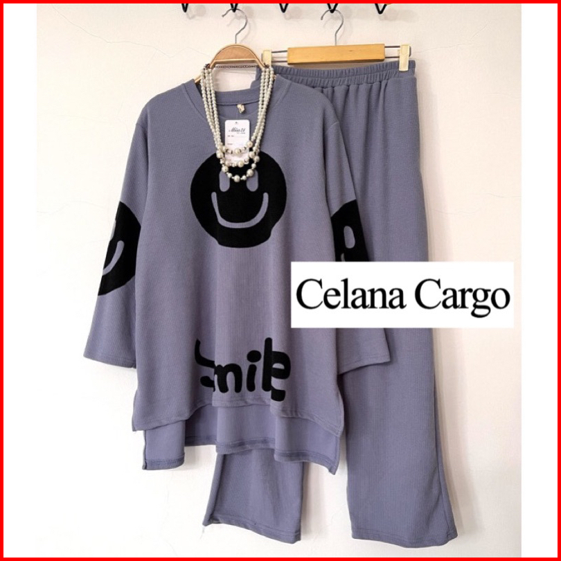 Smile Set Celana Cargo Crinkle Printing Ld 110 Setelan Smile One Set Smile Setelan Kombinasi Polos Smile Setelan Cargo S