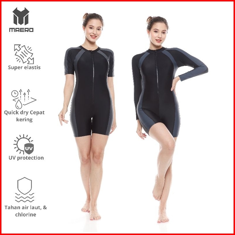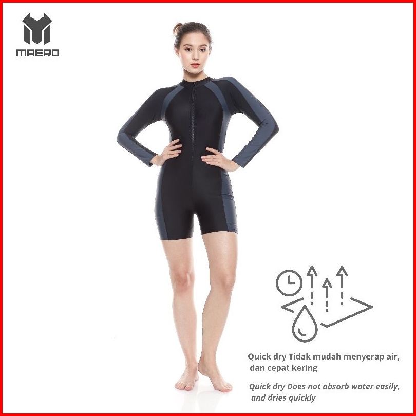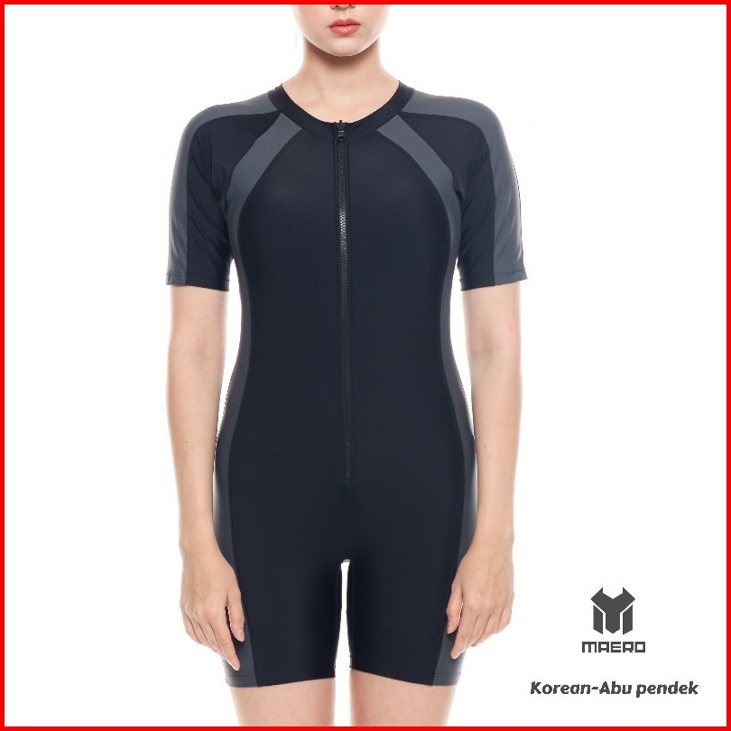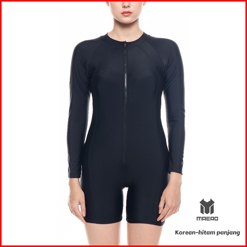 Maero Baju Renang Wanita Cup Bra Korean Style Full Black Baju Renang Wanita