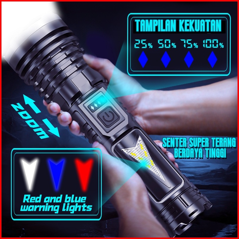 Senter Led Super Terang Berdaya Tinggi Jarak Jauh Anti Air Senter Led 20000 Lumens Original Usb C Rechargeable Zoom Flas