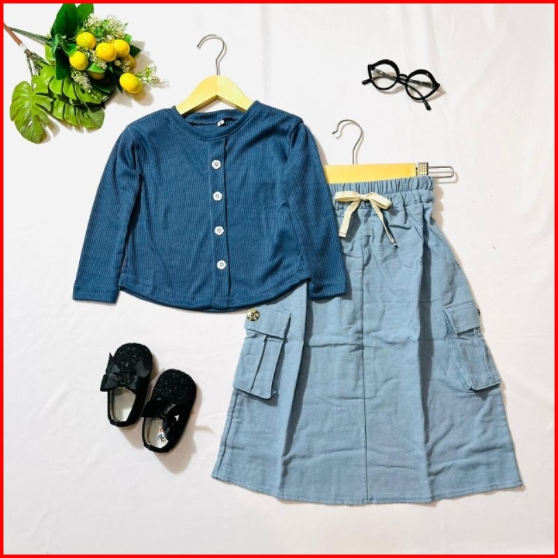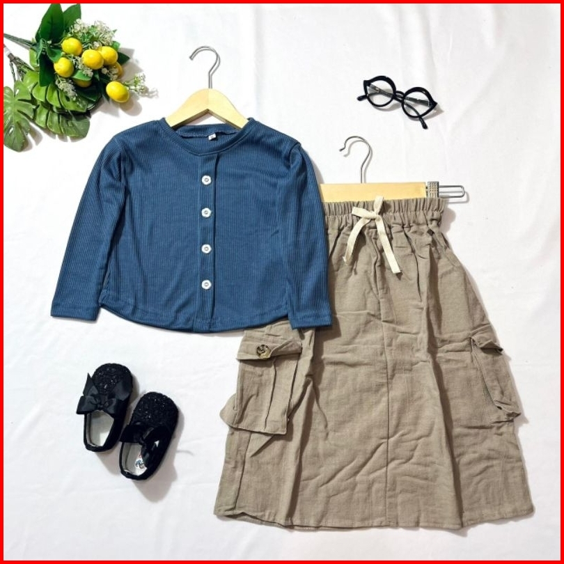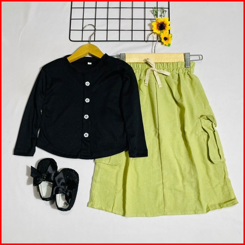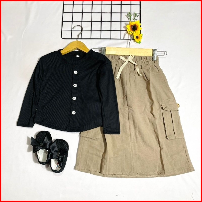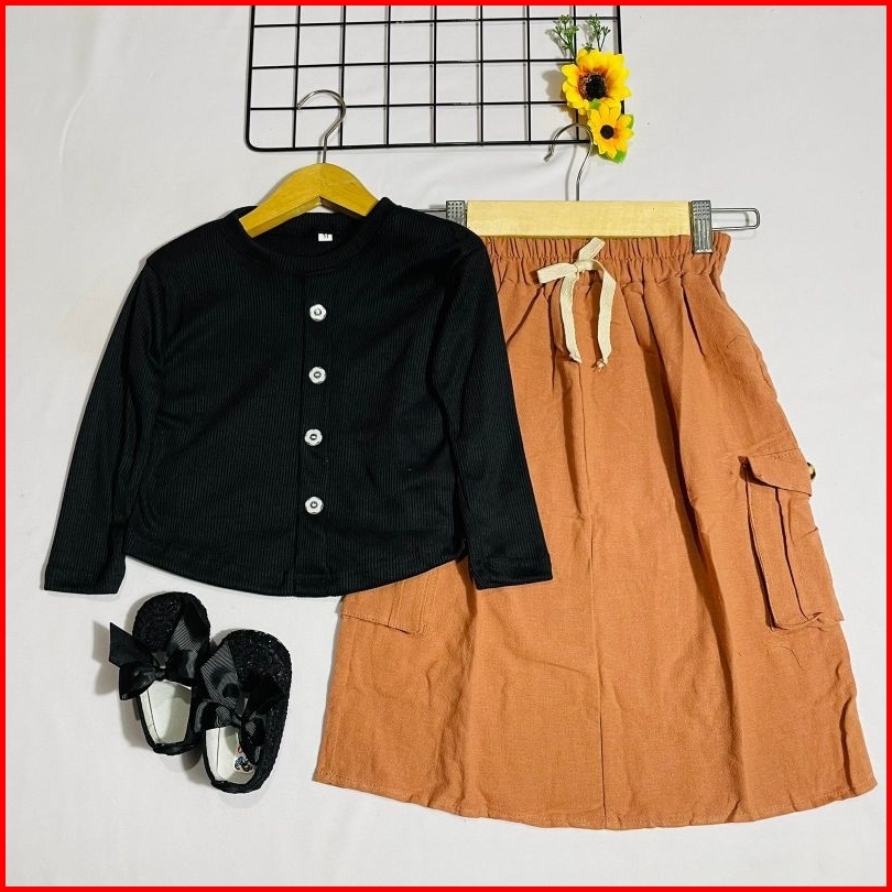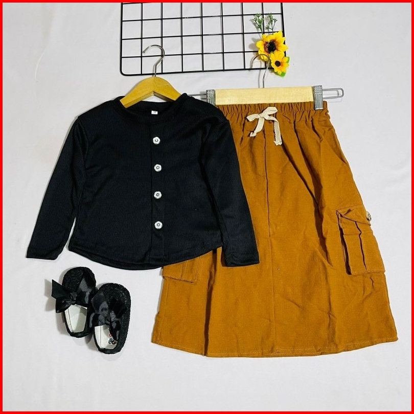 Setelan Rok Cargo Anak 2-7thn Oneset Anak Perempuan Setelan Anak Lucu