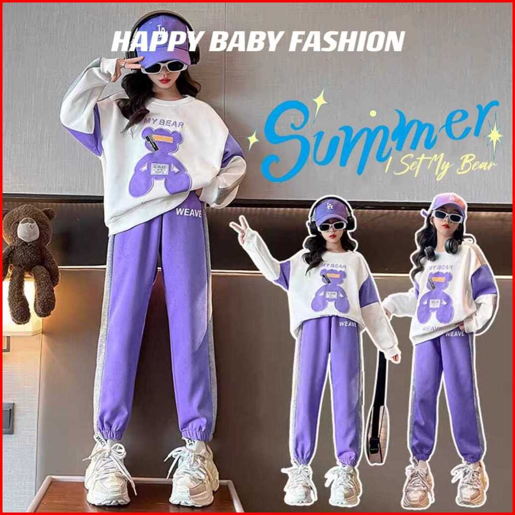 Happy Babynew 5-14 Tahun Baju Setelan Cewek Lengan Panjang Celana Panjang Impor Tz-28