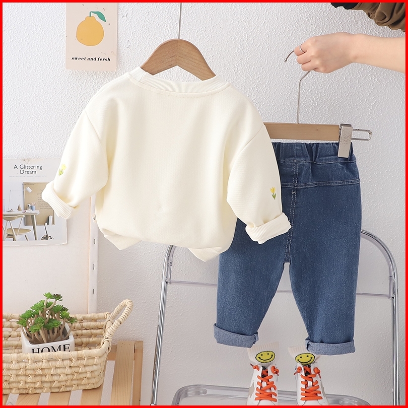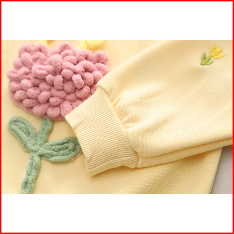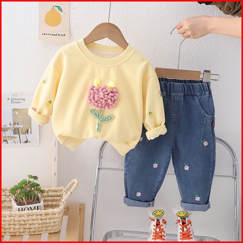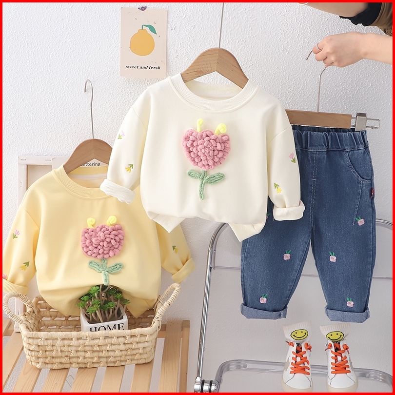 Setelan Sweater Anak Perempuan Import Stelan Sweater Anak Cewek Impor Sweater Lengan Panjang Motif Bunga 3d Setelan 2pcs