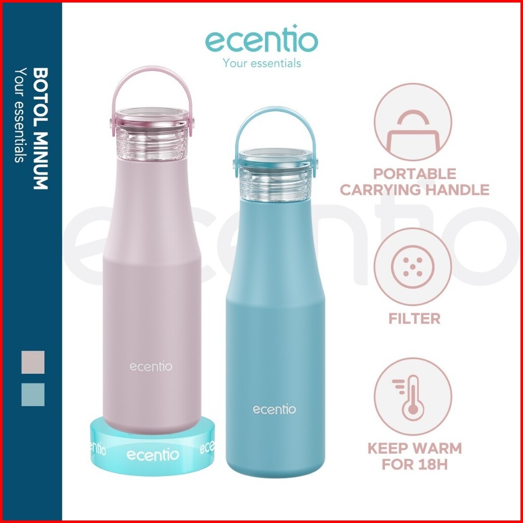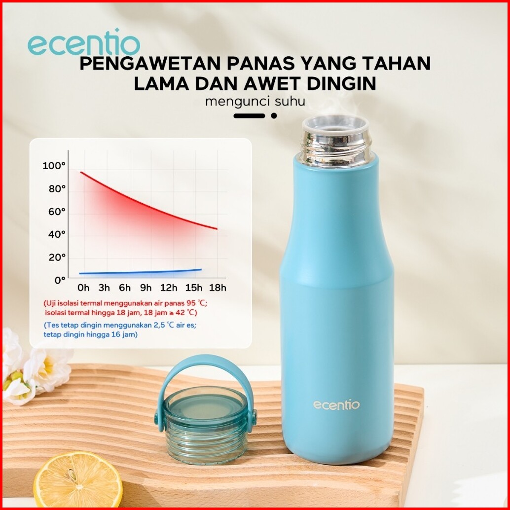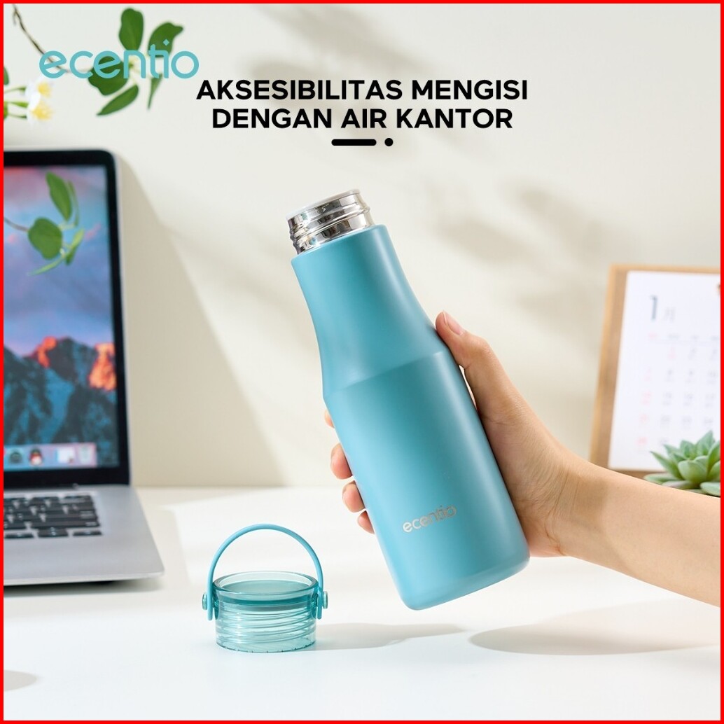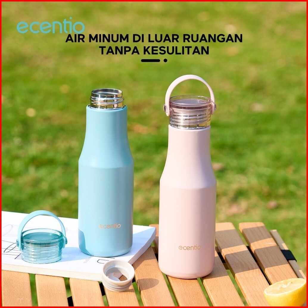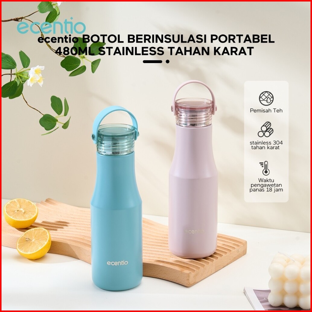 Ecentio Tumbler Stainless Aesthetic Portabel 480ml Dengan Pemisah Teh Botol Minum
