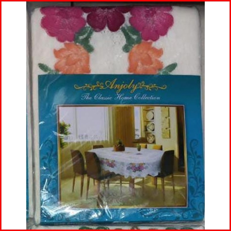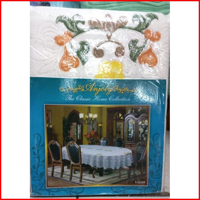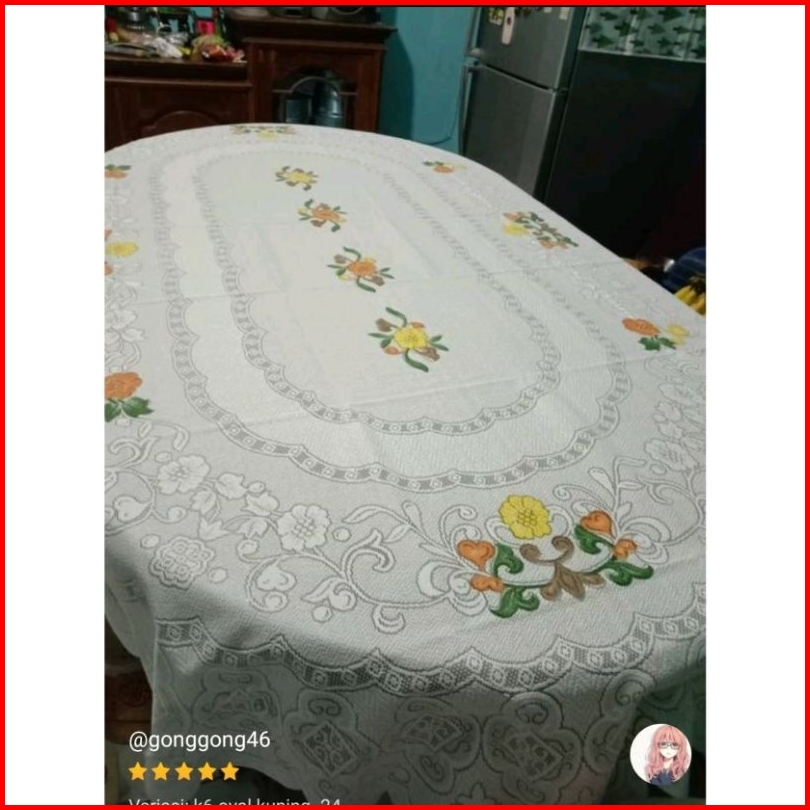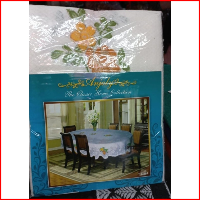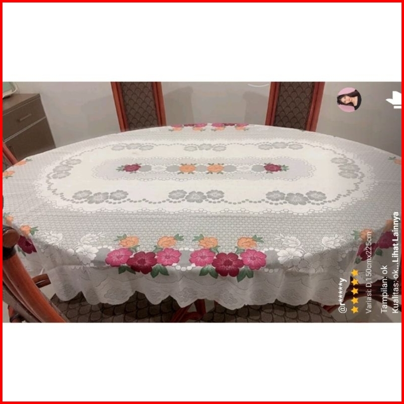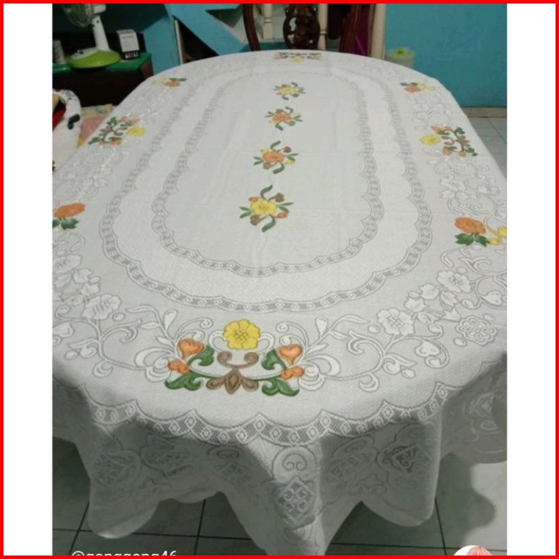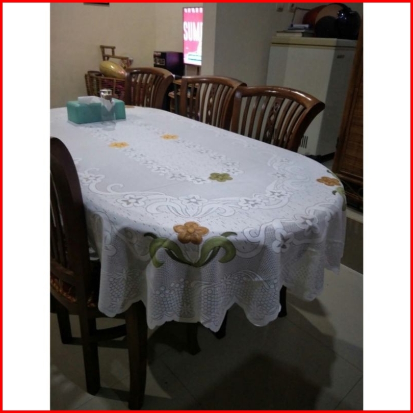 Taplak Meja Makan Oval Lonjong Untuk 6-8 Kursi Polyester Renda Classic